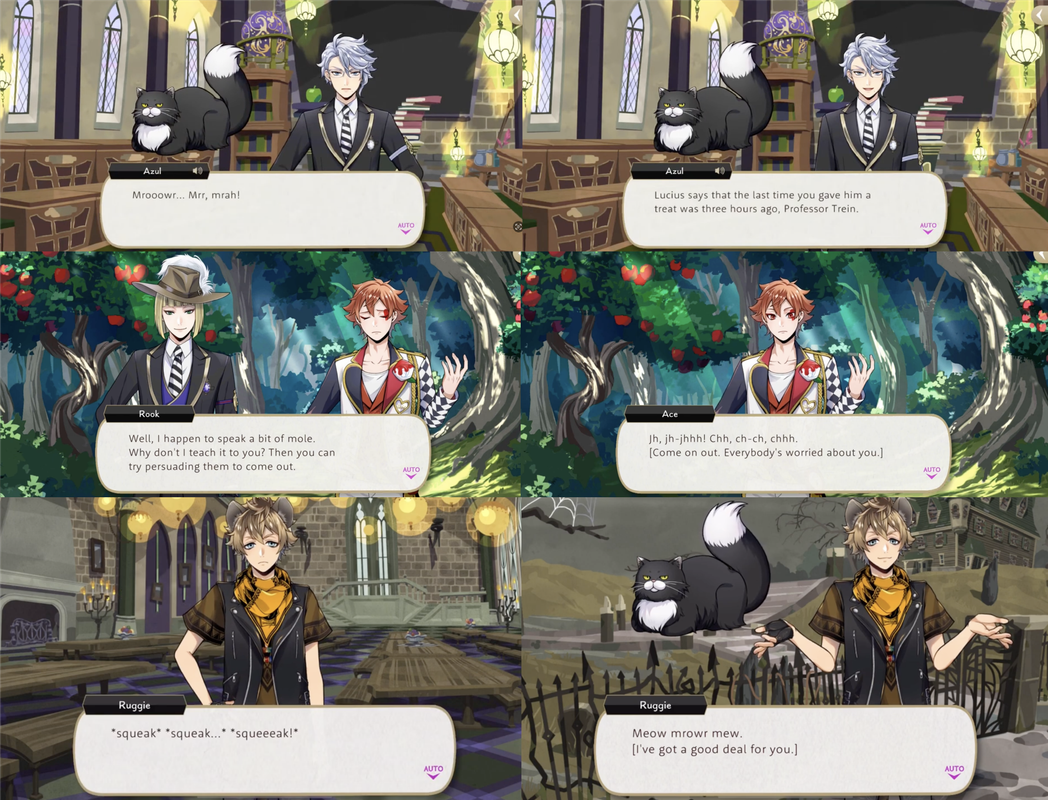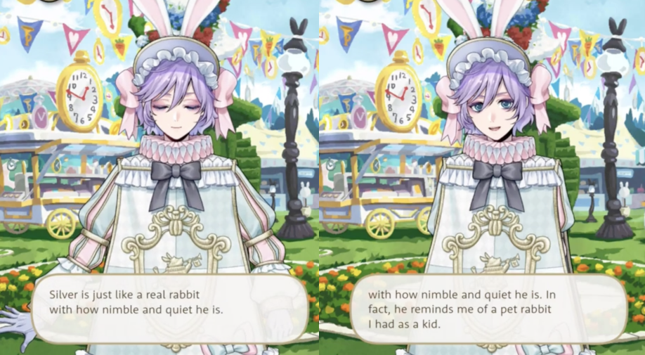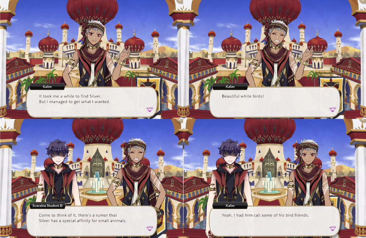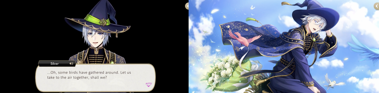 Much like during his lab wear vignette, when Silver interacts with birds during Glorious Masquerade he speaks to them as he speaks to everyone rather than adopting a form of animal linguistics that we have seen done by Rook, Ace, Azul and Ruggie, so it seems as though the animals understand him without him needing to speak their language, but his “affinity” for animals might only allow for translation in one direction: