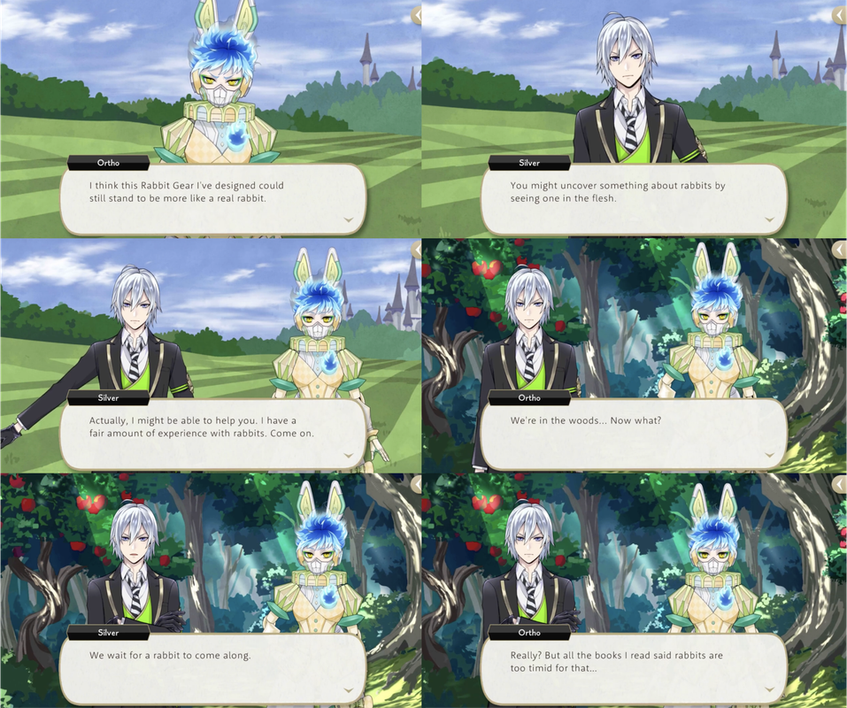 In Ortho’s rabbit gear vignette he goes to the woods and immediately attracts multiple rabbits. Silver is able to interpret their movements for Ortho (“I believe that means it wants to play”) but he never translates any spoken communication.