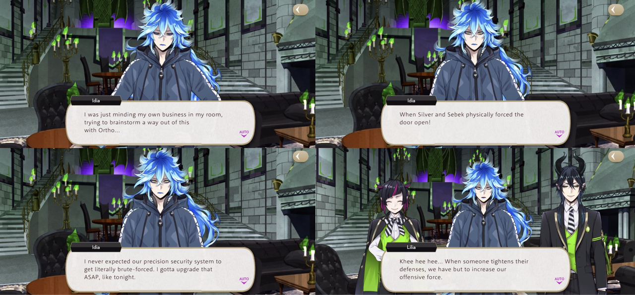 Silver and Sebek brute force their way into Ignihyde to kidnap Idia to Diasomnia for rehearsals of their Glorious Masquerade performance. Idia says that he will be upgrading their precision security system but