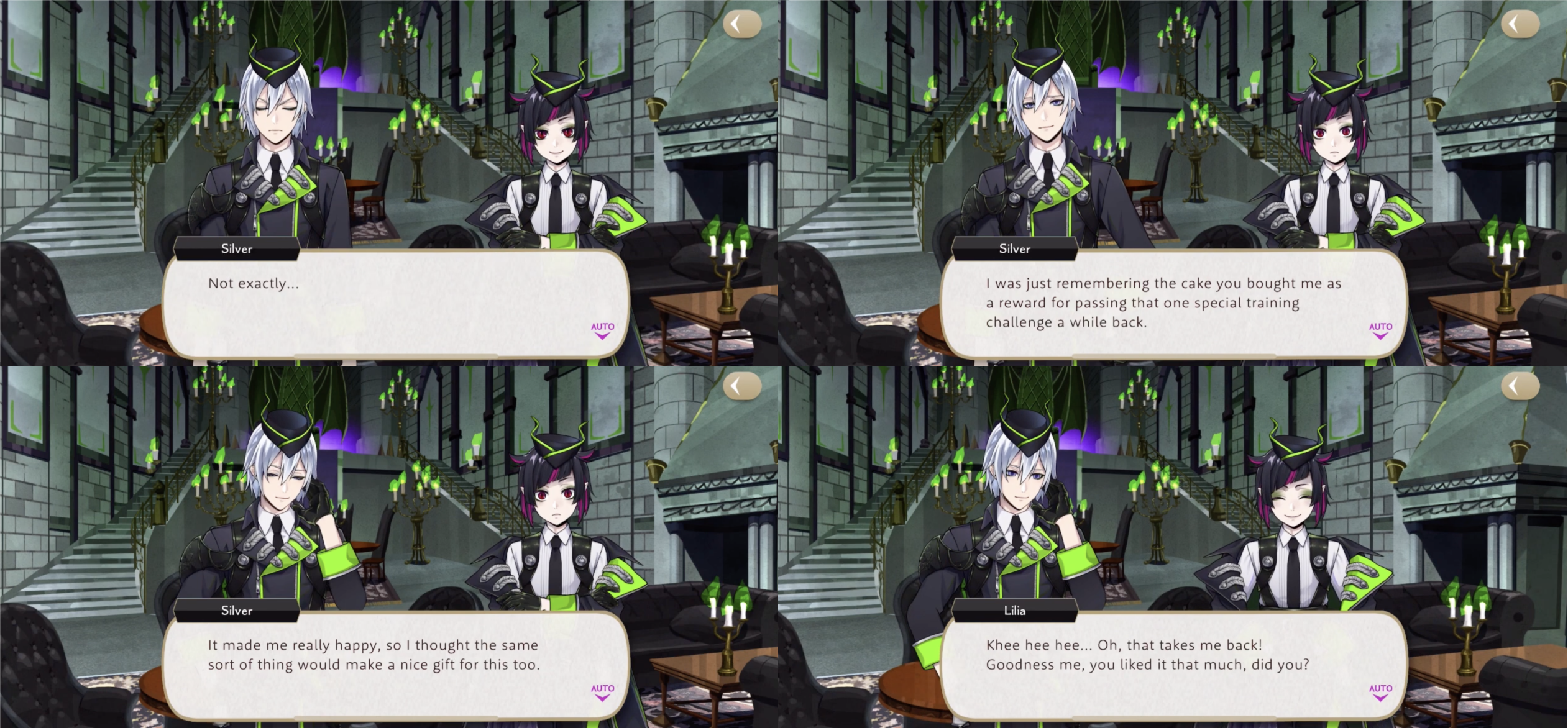 Silver mentions Lilia getting him picture books from other lands when he was a child, and a cake that Lilia bought for him as reward for passing a special training challenge. Silver says that is made him really happy, and Lilia seems pleased that he liked it so much.