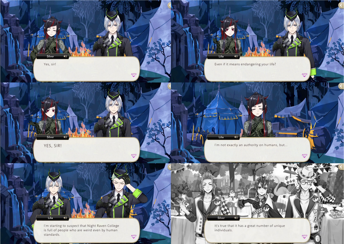 When Silver insists he is willing to stay with Lilia’s troops even at the risk of his own life Lilia observes, “I’m starting to suspect that Night Raven College is full of people who are weird even by human standards.”