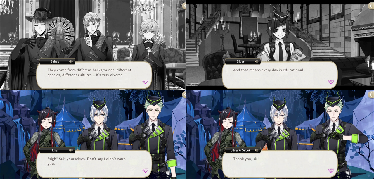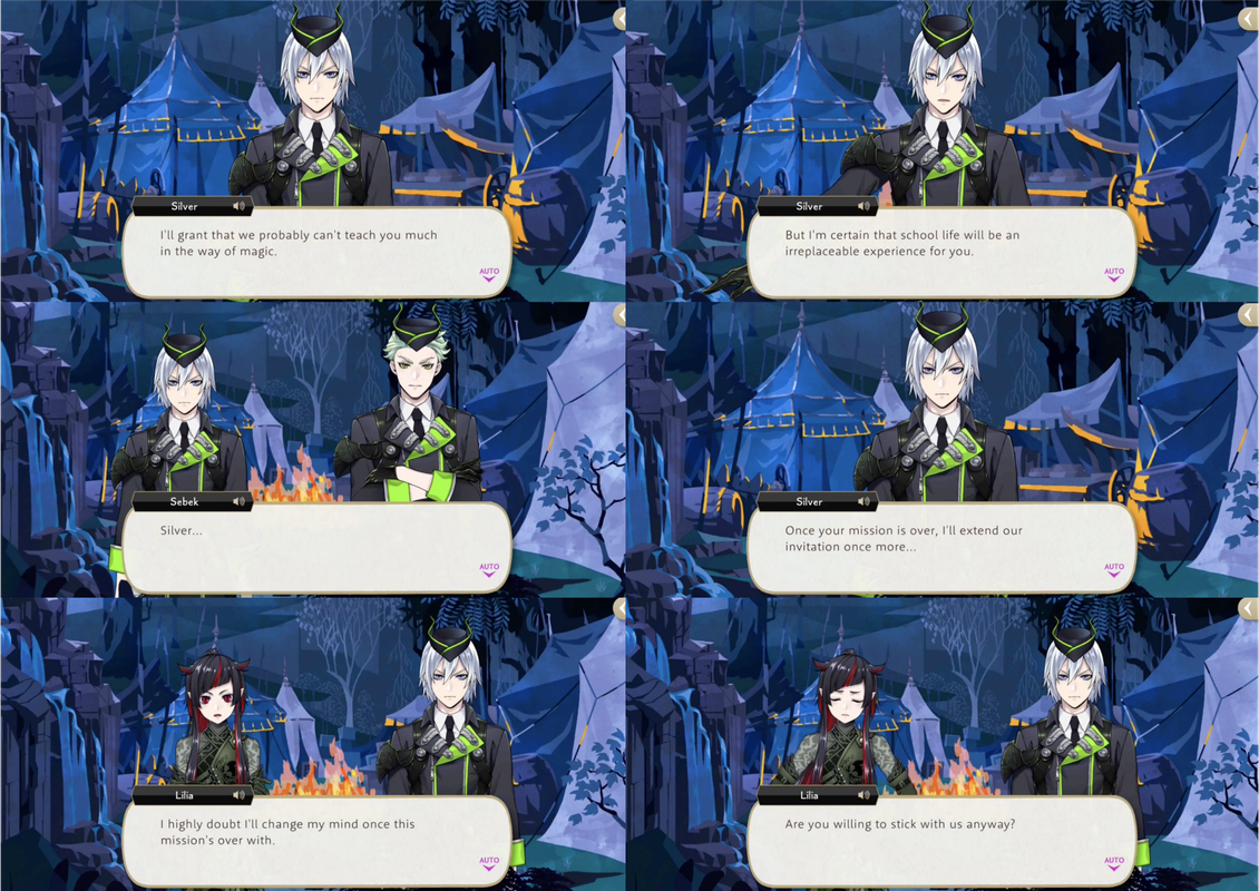 At the start of Lilia’s dream Silver plays into the role of an NRC student sent to try and recruit Lilia, who agrees to let them join his troops if they are capable of making contact with him in a fight.