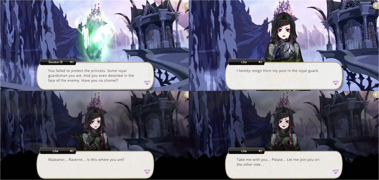 When it is revealed that Lilia left the royal guard after failing to save Maleanor (“Maleanor… Raverne… Is this where you are? Take me with you…please…let me join you on the other side…”) Silver says that he had never known the circumstances under which Lilia resigned, as Lilia had told him that he never went to the royal capital because it “just wasn’t his kind of place.”