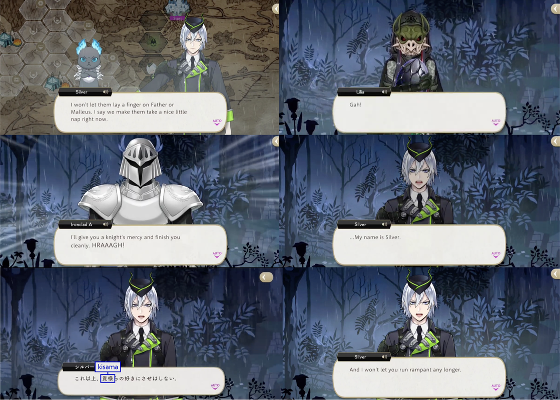Silver becomes enraged at the silver owls who are hunting down Lilia and the egg he carries, arriving just in time to save Lilia from being executed in a scene where he uses the “kisama” form of you for possible the first (and only) time in the entire game (more here).