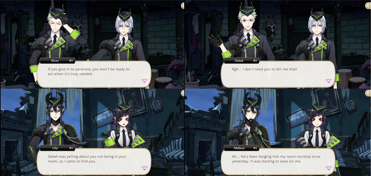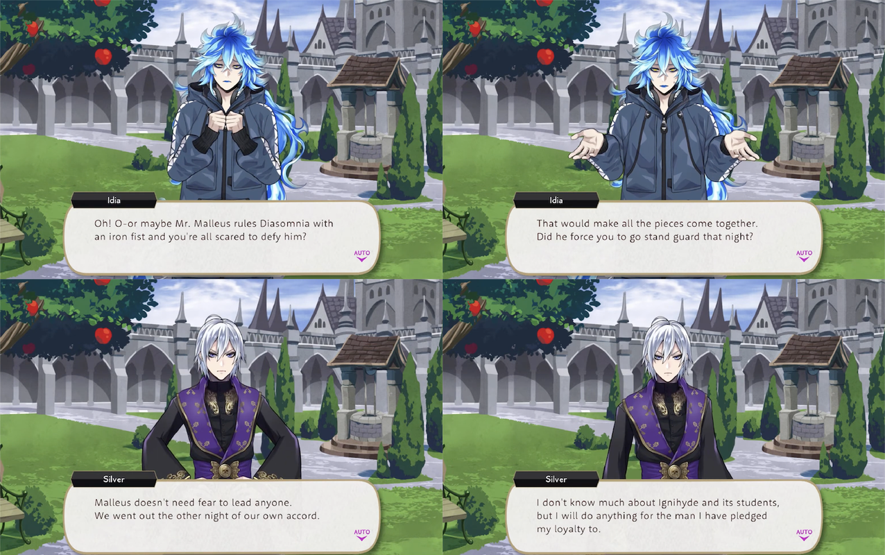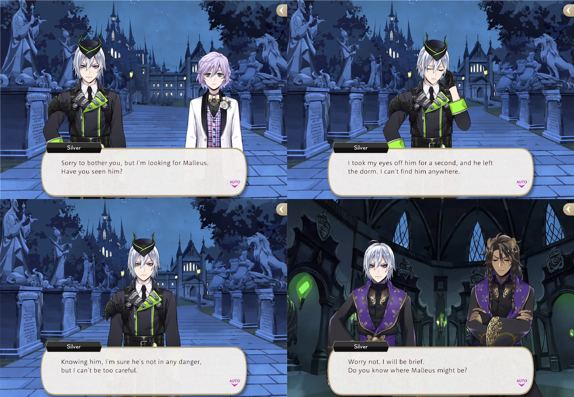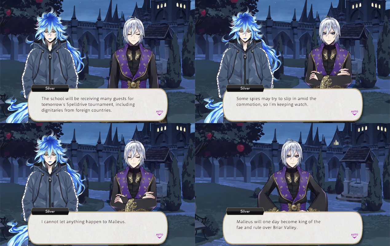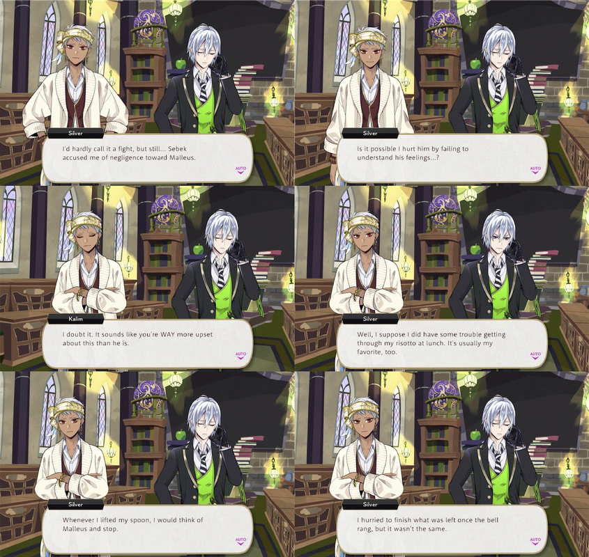 Silver explains to Idia that he “cannot let anything happen to Malleus”. Idia comments that Silver is “way more loyal” than any of the students in his own dorm, and asks if that loyalty is just a result of being scared to defy Malleus.