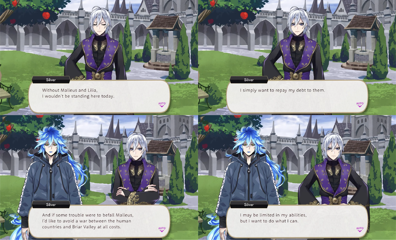 Silver responds, “I don’t know much about Ignihyde and its students, but I will do anything for the man I have pledged my loyalty to. Without Malleus and Lilia, I wouldn’t be standing here today. I simply want to repay my debt to them. And if some trouble were to befall Malleus, I’d like to avoid a war between the human countries and Briar Valley at all costs. I may be limited in my abilities, but I want to do what I can.”
