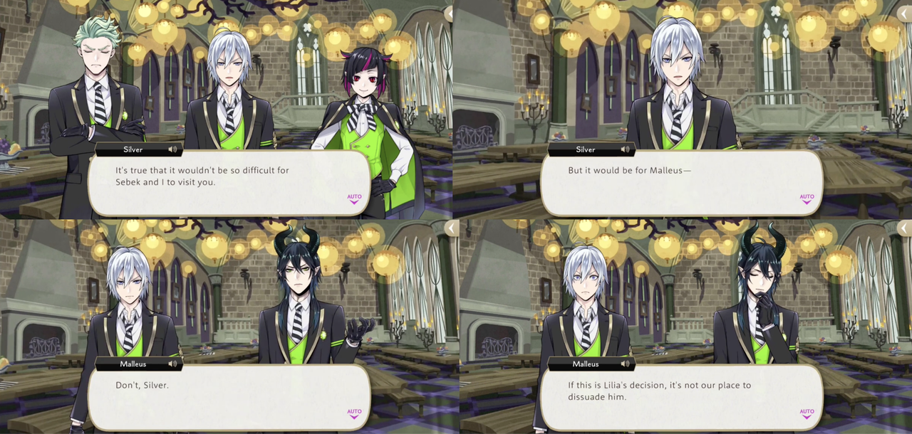 Silver finds Malleus and asks him to please “spare a few words” for Lilia before Lilia leaves, assuring Malleus that he does not need to prepare a gift.