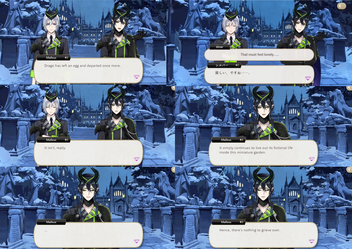 Silver observes, “That must feel lonely…” and Malleus assures him that it is not, as the it will continue to “live out its fictional life inside this miniature garden…hence, there is nothing to grieve over.”