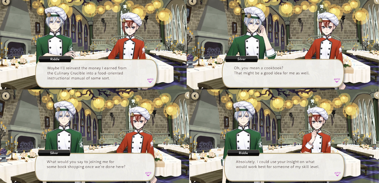 As fellow equestrian club members, Silver and Riddle have the occasional overlap. They also participate in the Culinary Crucible together, with Silver saying that he only participated in the first place because Riddle invited him so that he might “instill some discipline” and help fix his “dozing habit.”