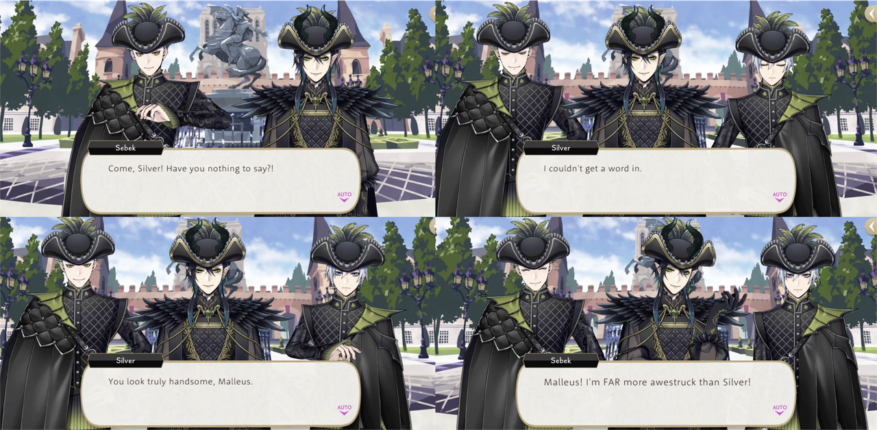 After badgering Silver into complimenting Malleus in Fleur City (Silver: “I couldn’t get a word in”) Sebek then follows with, “I’m FAR more awestruck than Silver!”