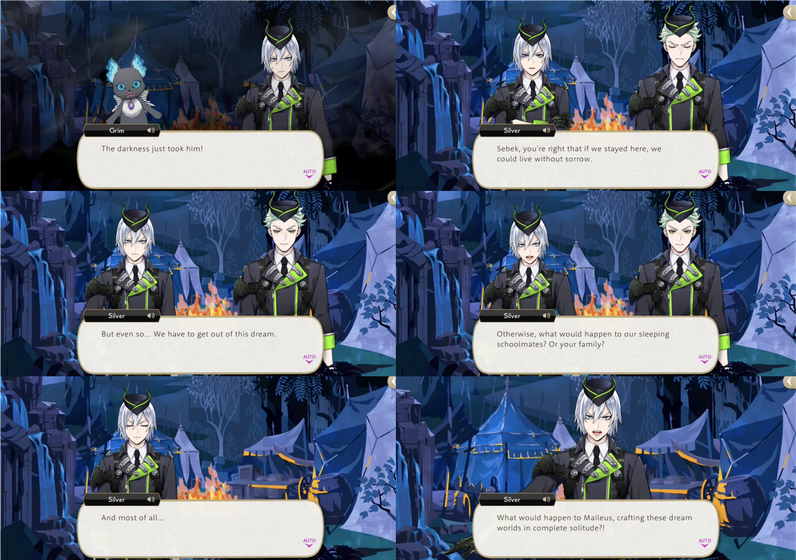 Silver reminds him that they are in a dream where nothing they do will change reality and Sebek again questions if they cannot just stay in the dream, where Malleus can live with his mother and Silver will be able to live with Lilia.