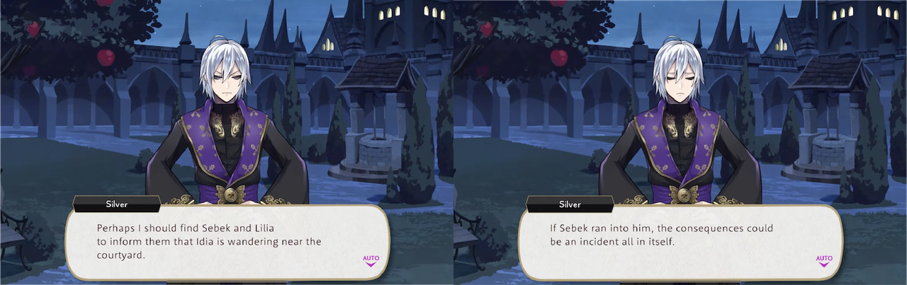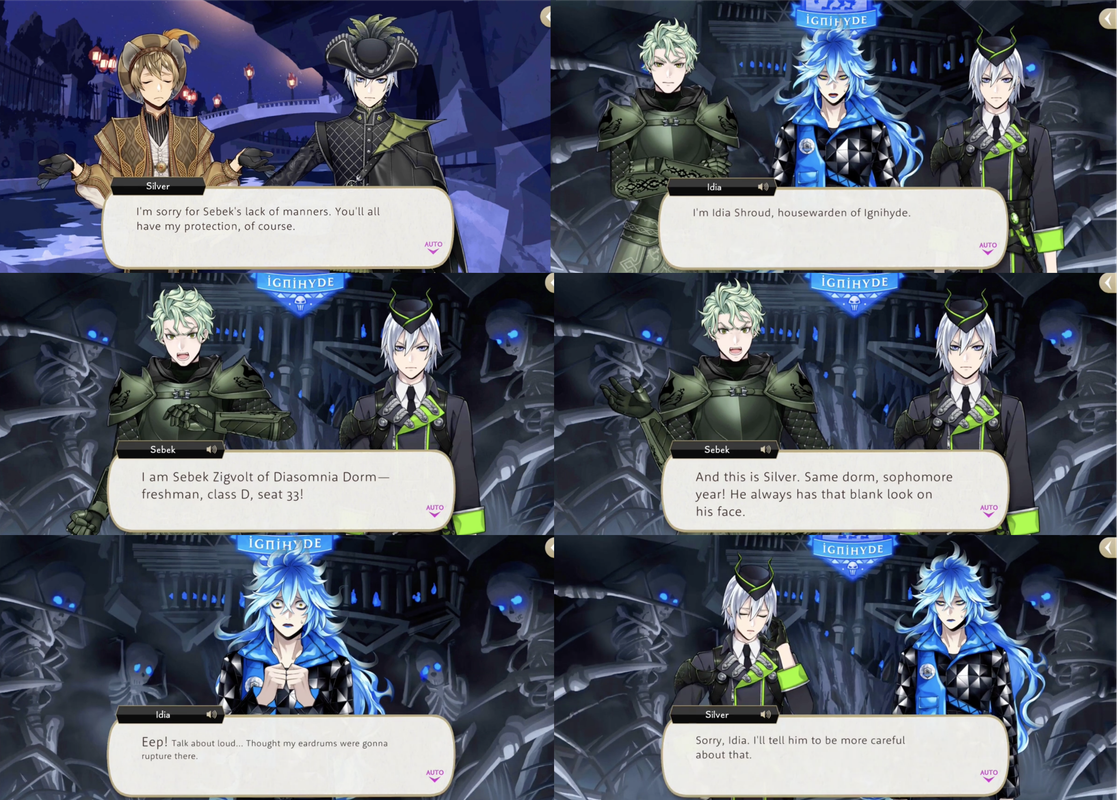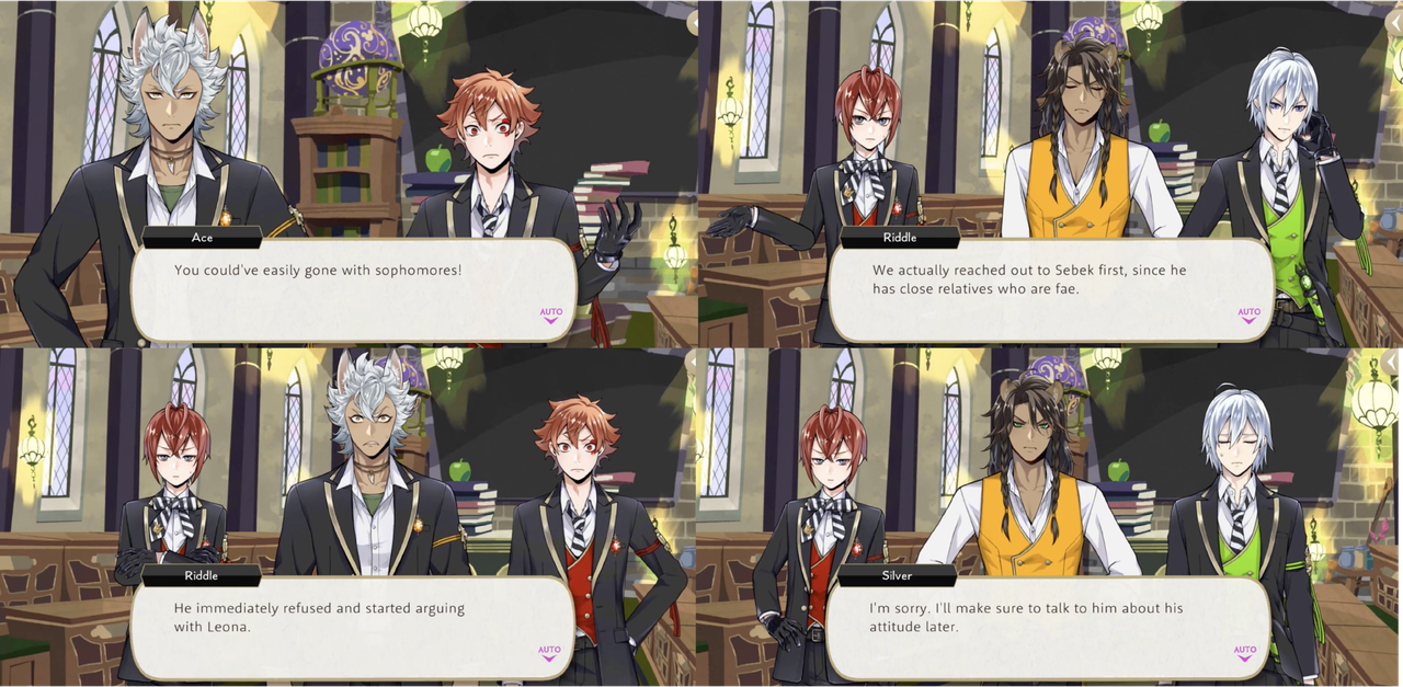 We see Silver apologize often for Sebek during Halloween, and in a vignette where Silver is patrolling the school grounds he decides to inform Sebek and Lilia that Idia is in the courtyard, as, “If Sebek ran into him, the consequences could be an incident all in itself.”