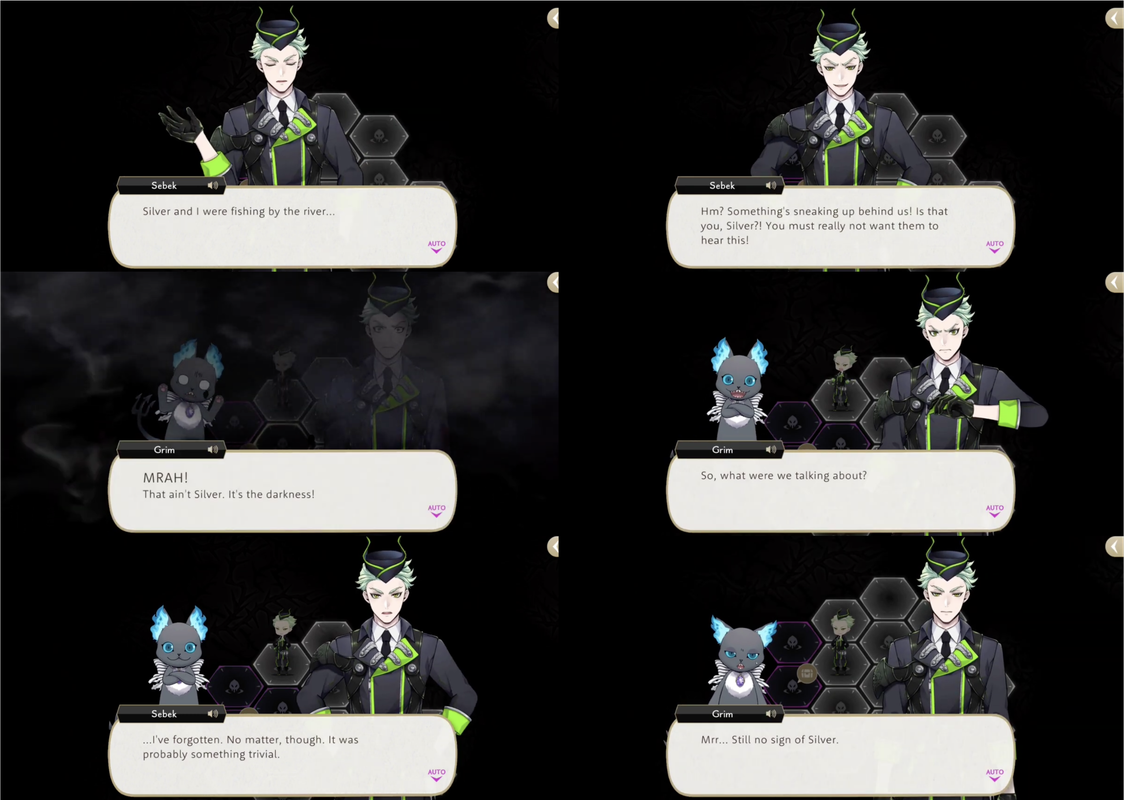 While searching for Silver in the darkness Sebek threatens to tell the prefect and Grim an embarrassing story from a fishing trip they once took together. He is interrupted by a darkness-attack, but when Grim later asks what it was he was talking about Sebek claims to have forgotten.