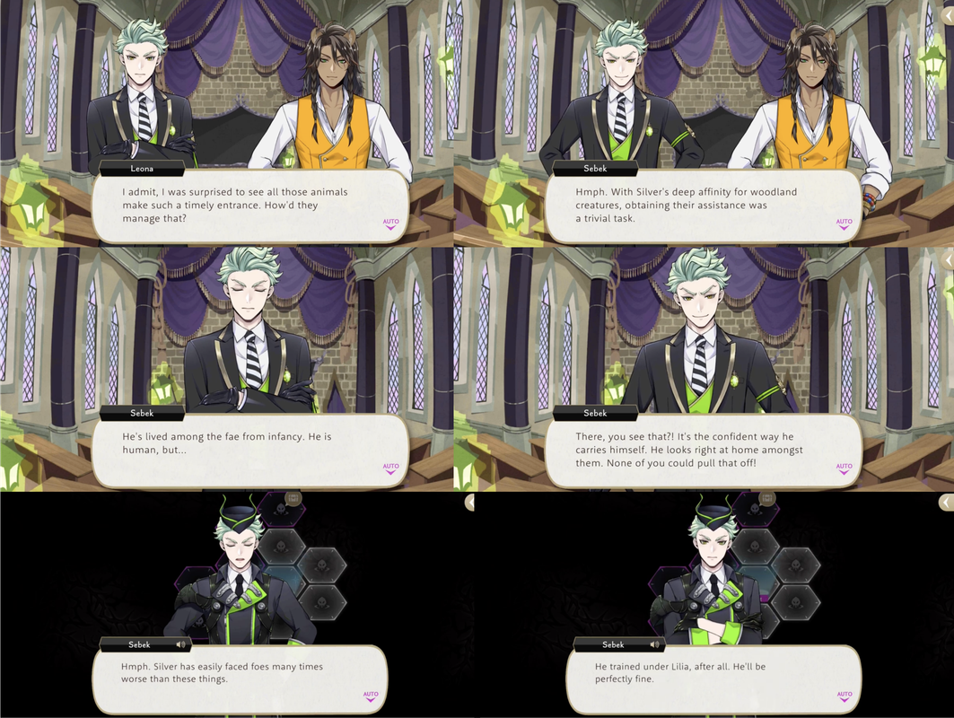 Sebek also compliments Silver during Fairy Gala, saying that Silver’s deep affinity for woodland creatures made obtaining their assistance “a trivial task” and complimenting the confident way that Silver carries himself on the runway: “He looks right at home amongst (the fairies). None of you could pull that off!”
