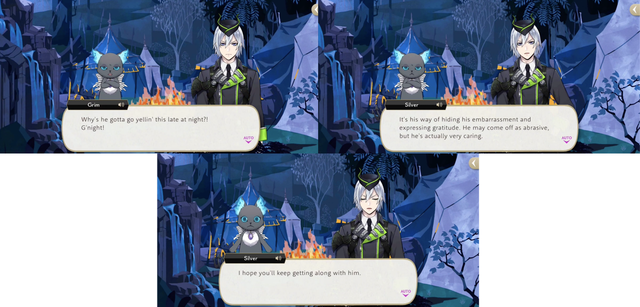 Silver says that he could learn a lot from Sebek’s refusal to give up, and when Grim asks why Sebek is always yelling Silver explains, “It’s his way of hiding his embarrassment and expressing gratitude. He may come off as abrasive, but he’s actually very caring. I hope you’ll keep getting along with him.”