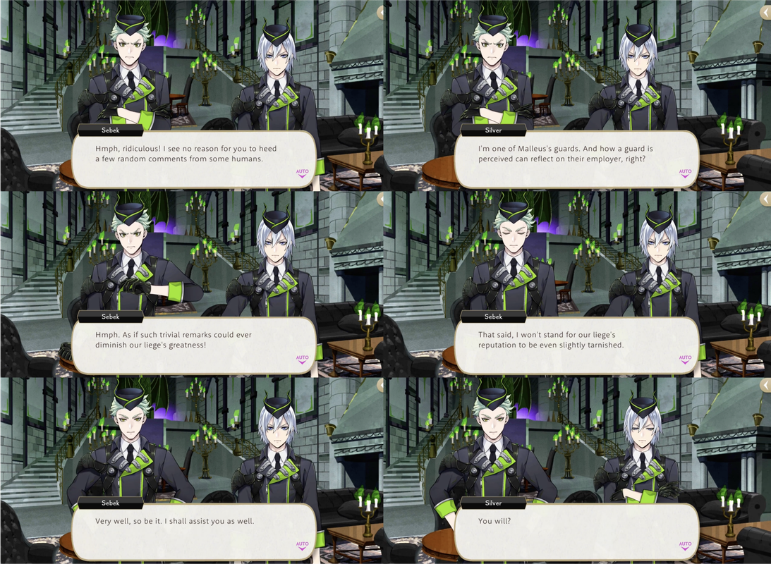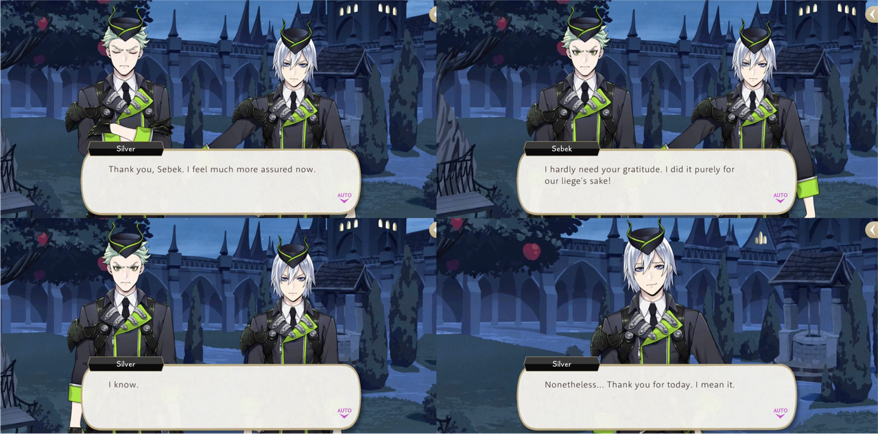 Silver says that while Sebek’s wording leaves much to be desired, he understands that Sebek is saying that he does not need to change, and thanks him for his help. Sebek says that he does not need his gratitude and did it purely for Malleus and Silver responds, “I know. Nonetheless…thank you for today. I mean it.”