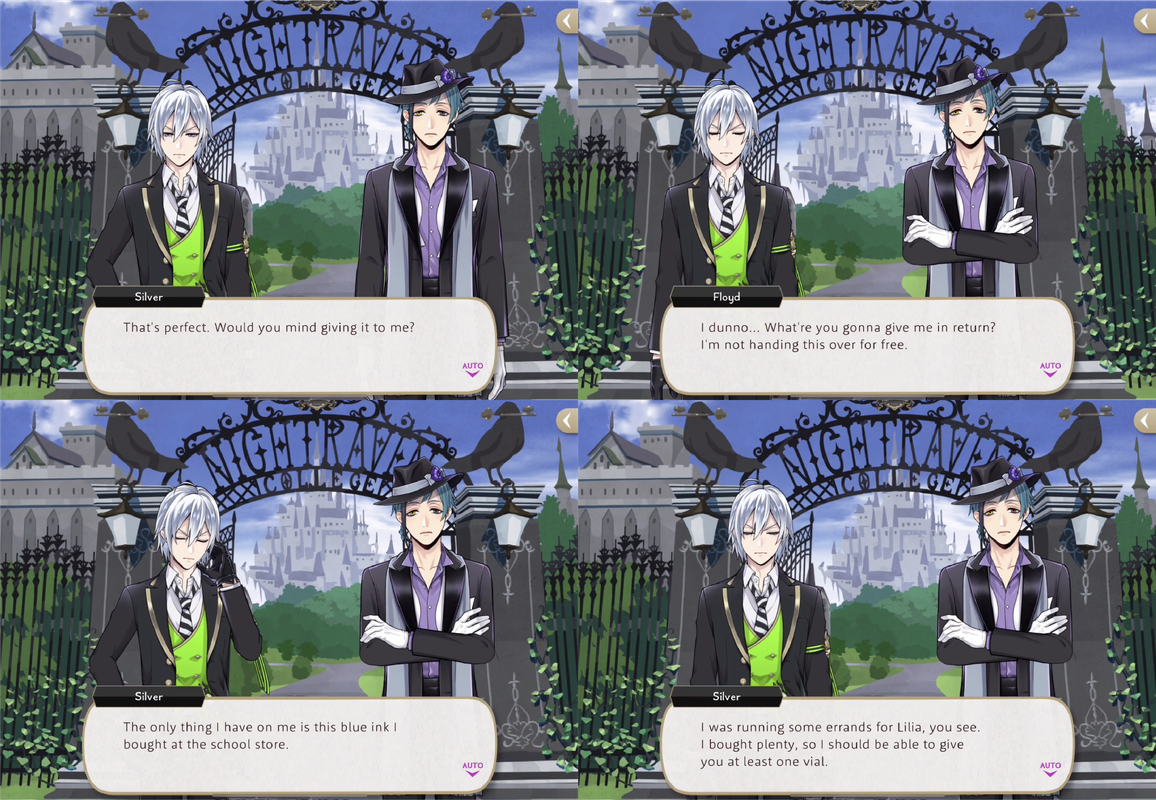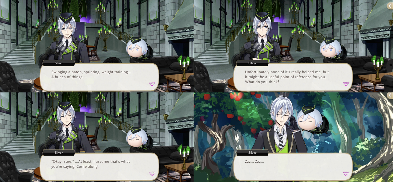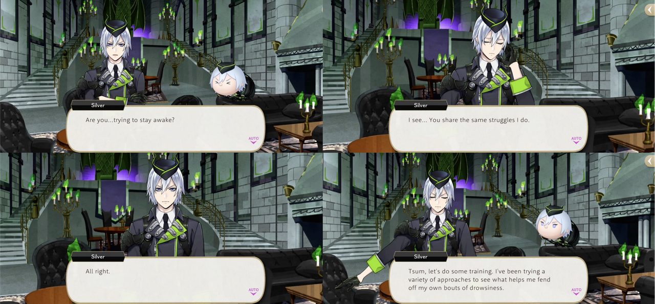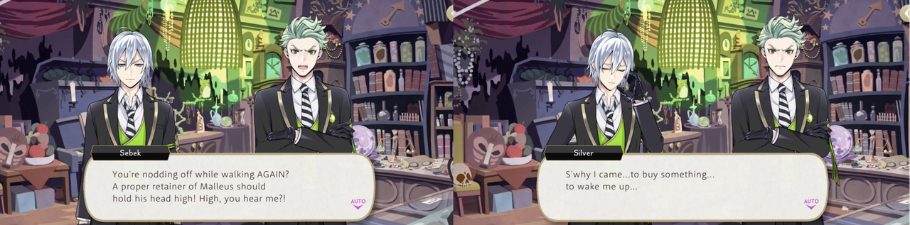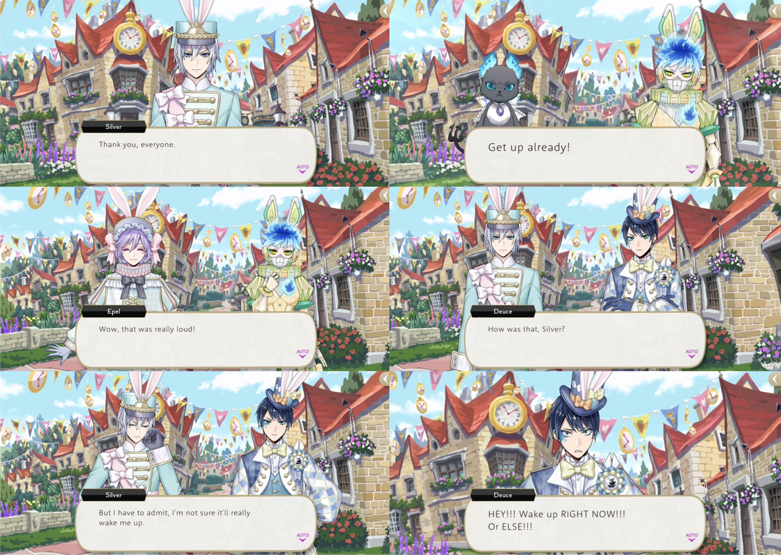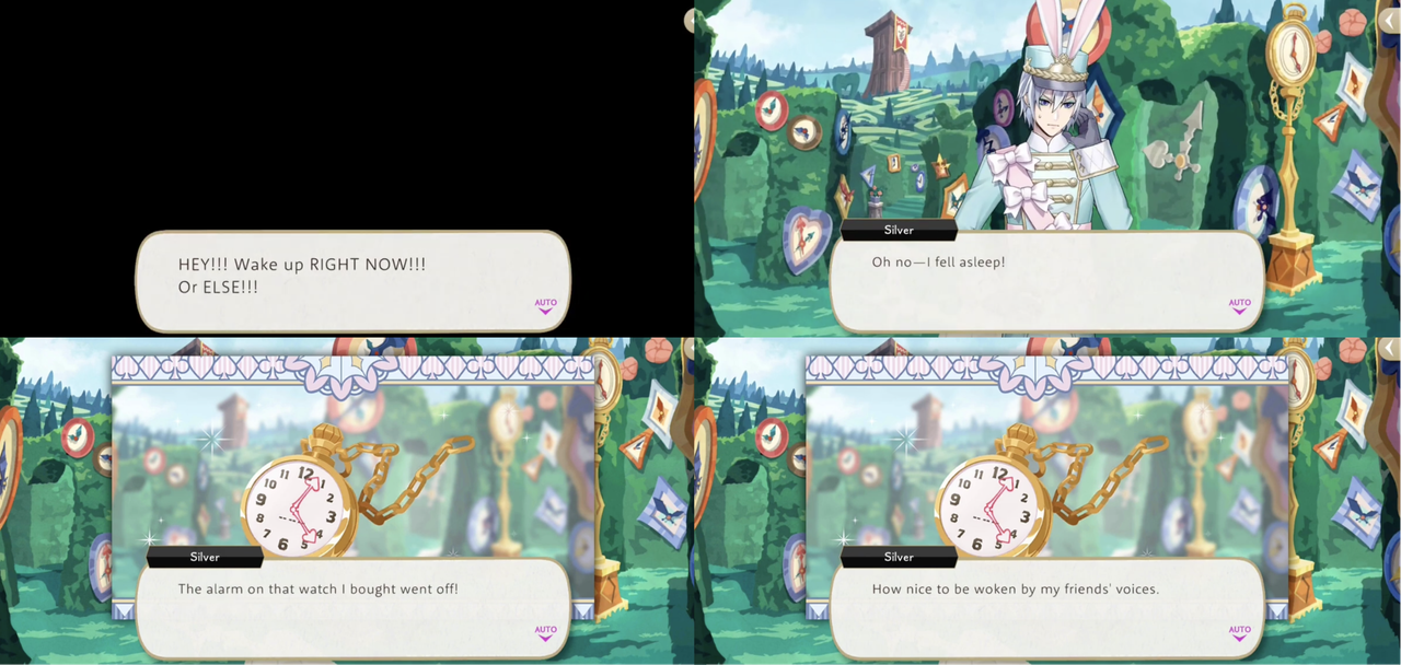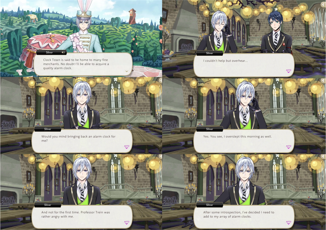 In a vignette Silver goes to the school store in search of something that will wake him up, and his motivation for attending the White Rabbit Fes in Deuce’s hometown is to add to his “array of alarm clocks.”