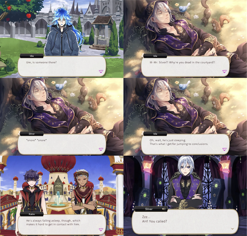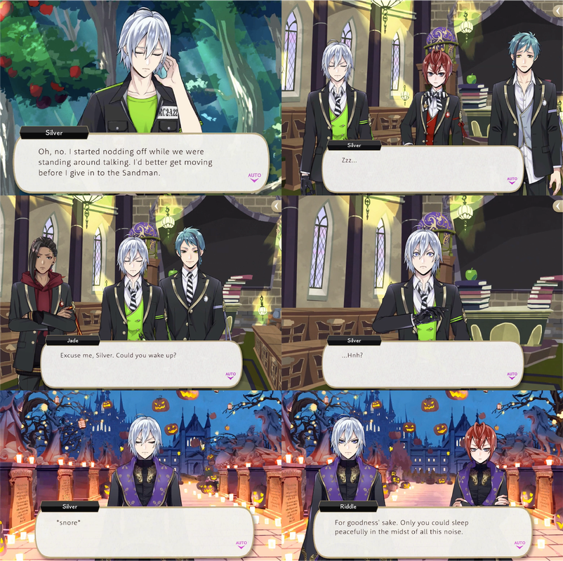 There are many instances of Silver falling asleep throughout the game: in the woods behind the school, in classrooms, at the Halloween party, in the school courtyard, during his own birthday party, and more.