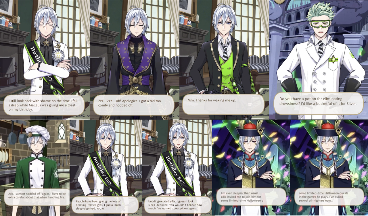Kalim says that Silver also fell asleep during their art class while modeling for him, we also see him fall asleep during Vargas Camp when he is supposed to be guarding the fire.
