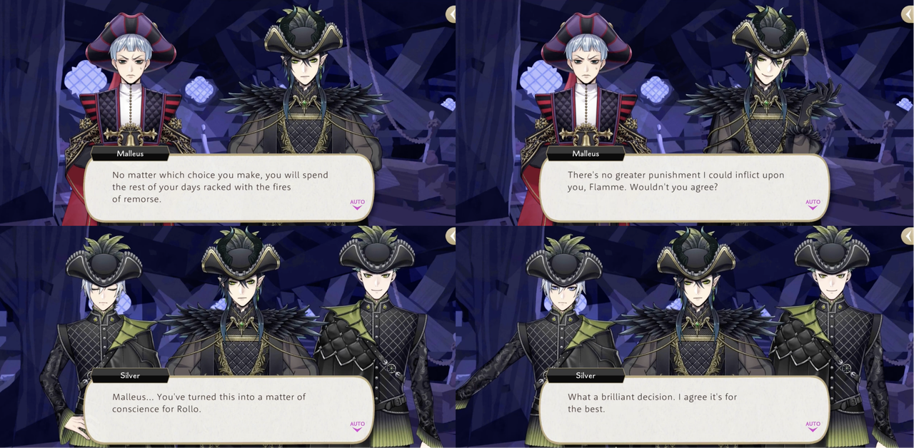 When Malleus’ punishment for Rollo is revealed he explains his motivation is to make Rollo “spend the rest of (his) days racked with the fires of remorse” no matter what choice he makes and Silver follows with, “You’ve turned this into a matter of conscience for Rollo. What a brilliant decision.”