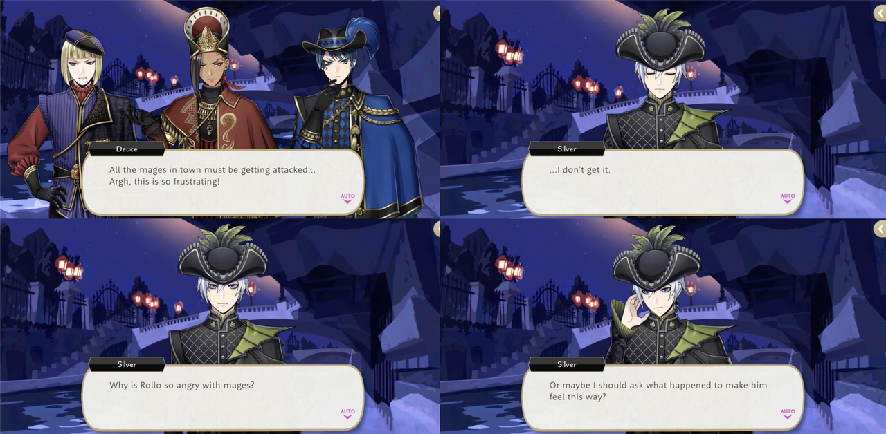 When Rollo attacks the city with magic-draining firelotuses the visiting NRC group expresses frustration with how helpless they have become and only Silver asks, “Why is Rollo so angry with mages? Or maybe I should ask what happened to make him feel this way?” (Sebek: “How should we know? And why should we care?!”)