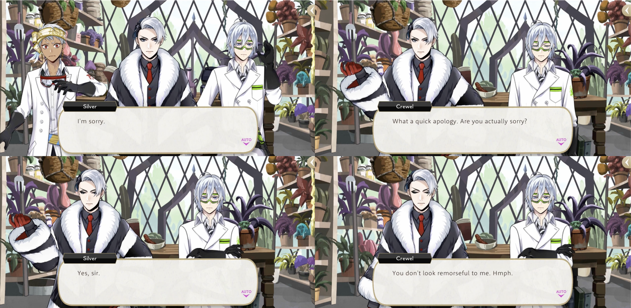 Grim also comments on how it is hard to tell what Silver is thinking and when Silver apologizes to Crewel during a class Crewel asks if he is sincere, saying, “You don’t look remorseful to me.”