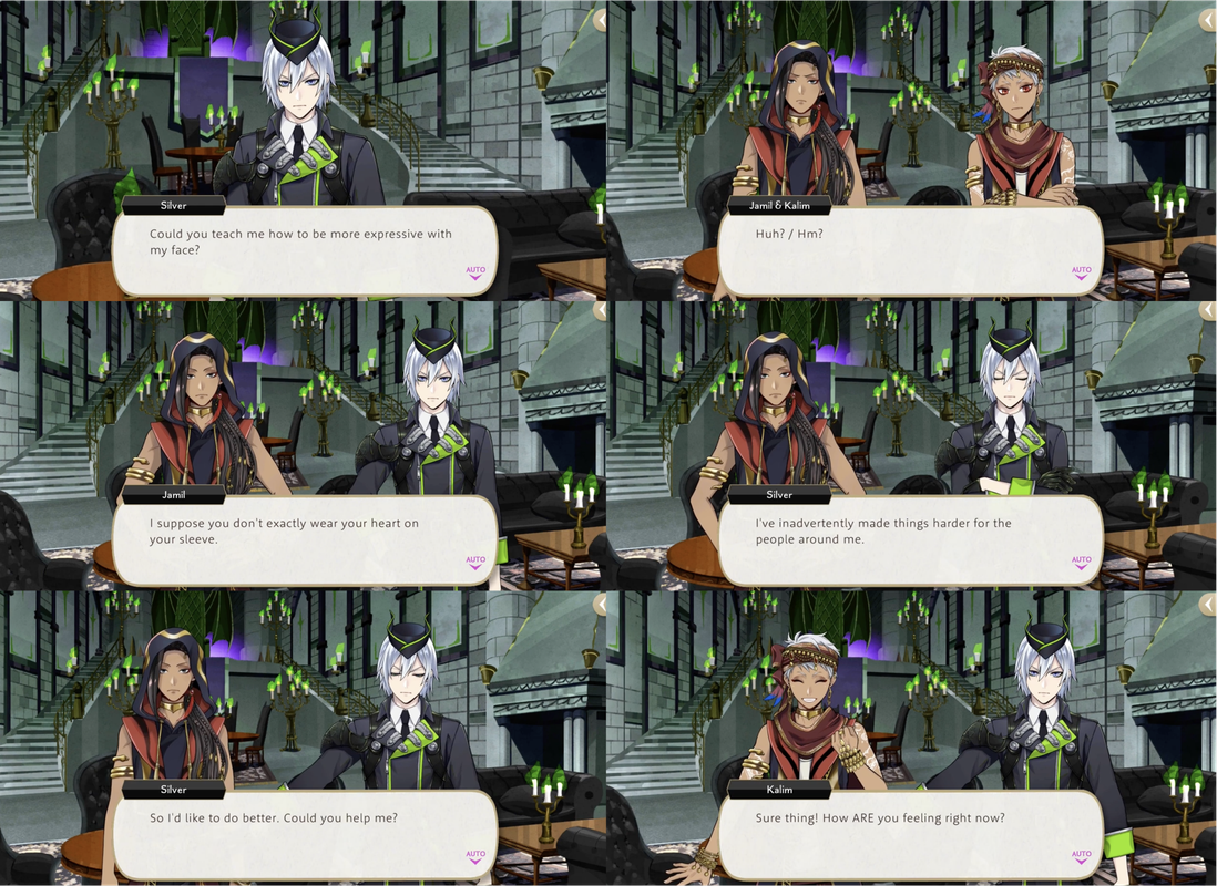 Silver is shocked by how is inexpressiveness has been burdening those around him and enlists Kalim (who brings Jamil) in helping him learn how to be more expressive with his face.