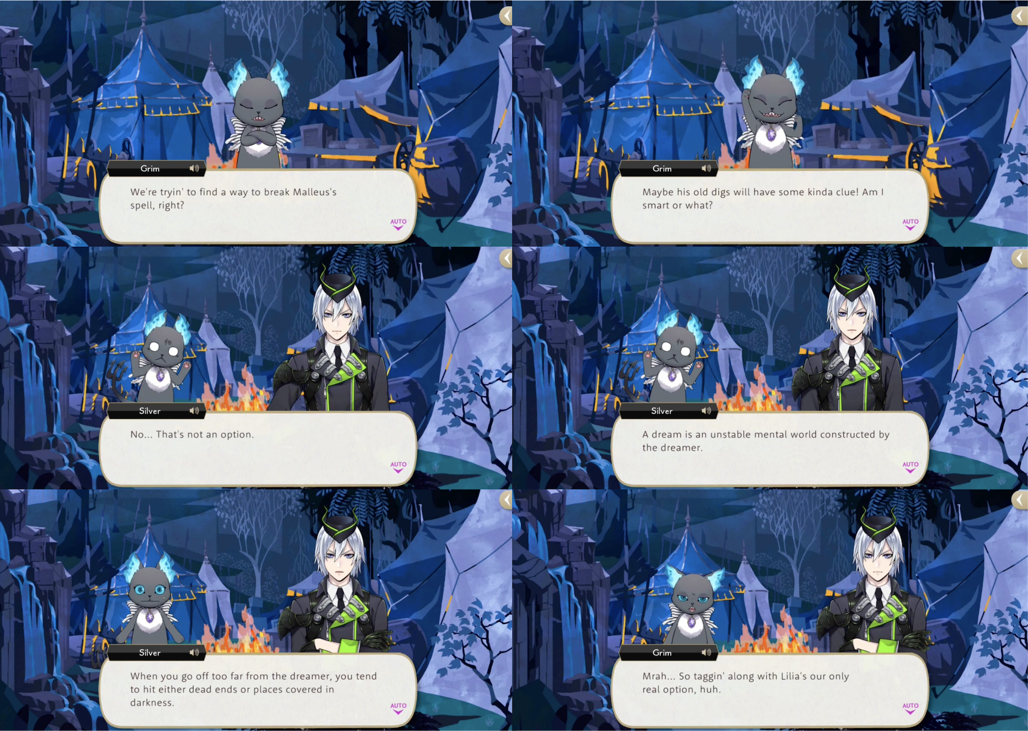 Silver seems familiar with the darkness that constantly pursues them throughout Malleus’ dreamscapes, saying that he has had many encounters with it. He says that the darkness will appear in people’s dreams and pull them into a deeper slumber, but it is not specified if it is unique to Malleus’ dreamscapes or something that always exists in dreams.