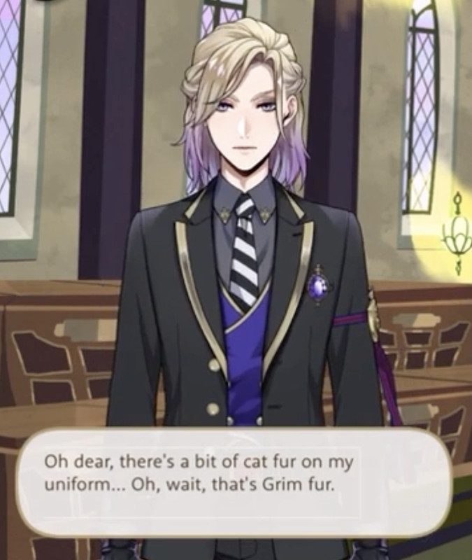 Vil has a voice line about finding Grim’s fur on his school uniform.