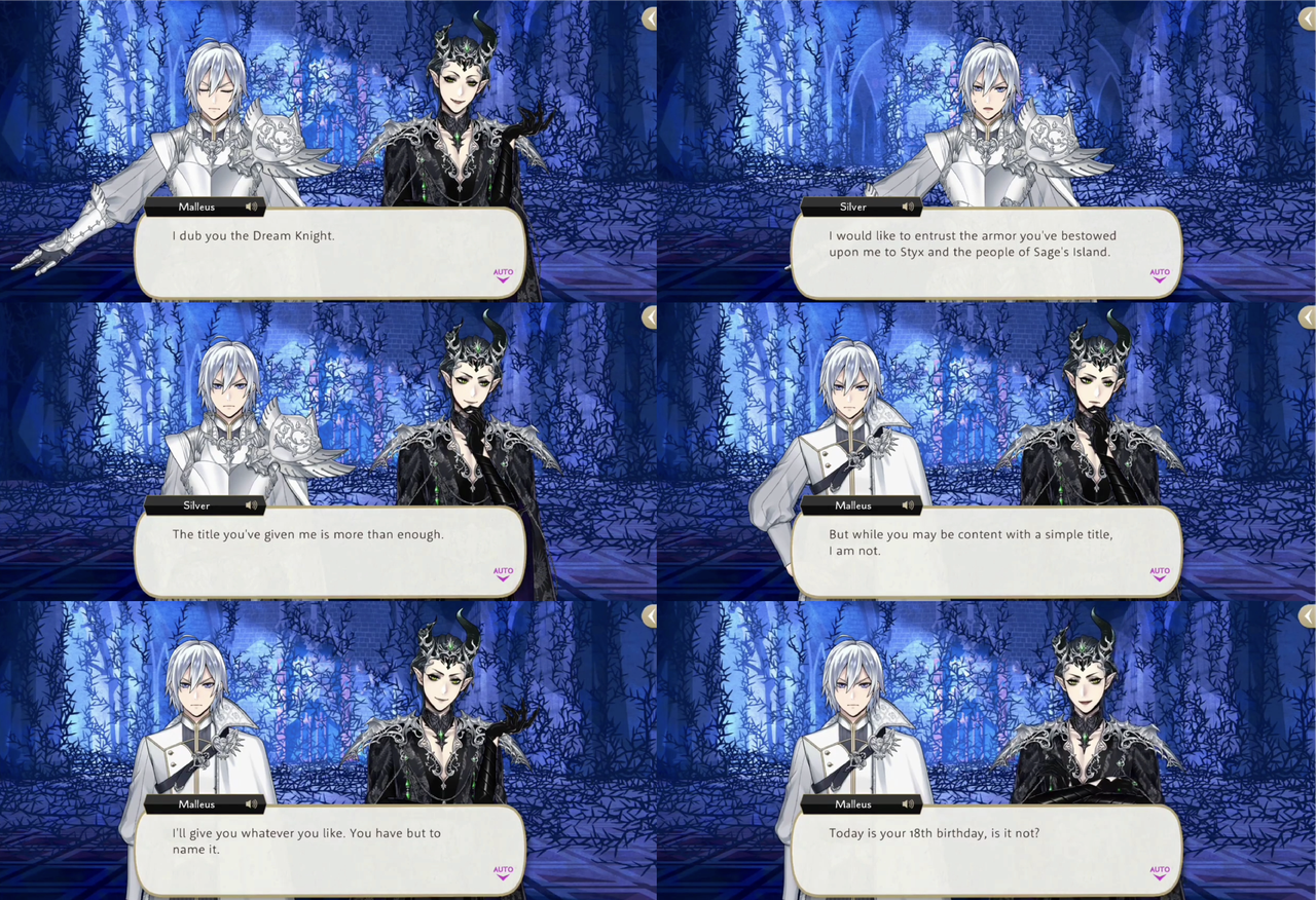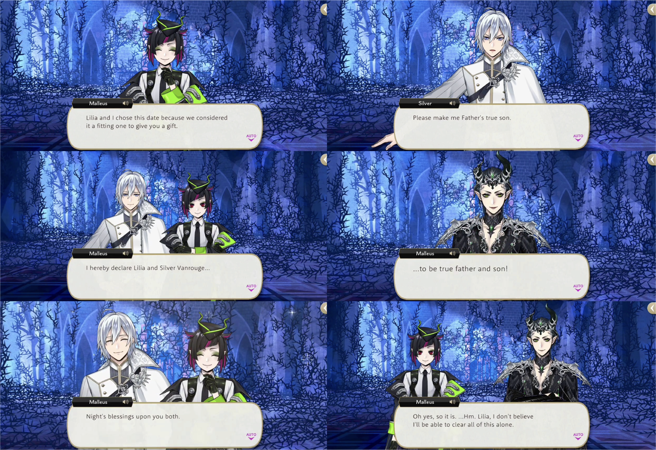 Silver donates his armor instead of keeping it for himself and Malleus offers him anything else he may want, as it is also his 18th birthday. Silver asks to be made Lilia’s true son, which Malleus grants.
