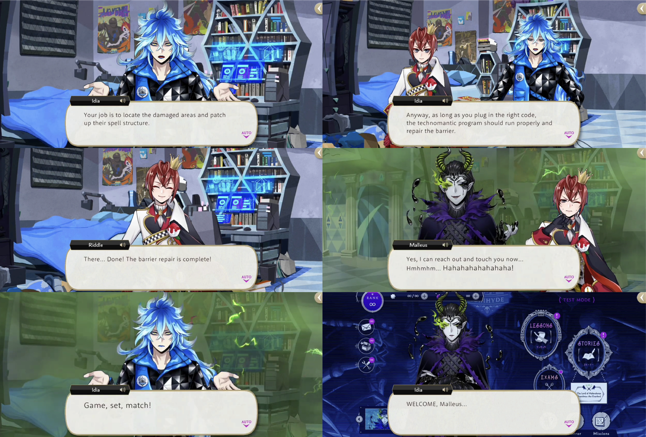 Riddle buys Idia enough time for Idia to finish his secret weapon, which traps Malleus like a gacha character in a mobile game.