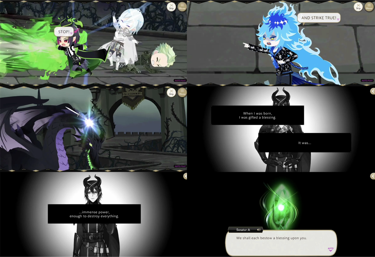 In a flashback we see that Malleus was given three blessings from the Briar Valley senate: the power to triumph over all, a voice that will make everyone submit to him, and time that never expires, and we see a scene of child-Malleus causing Lilia’s ears to bleed through his laughter.