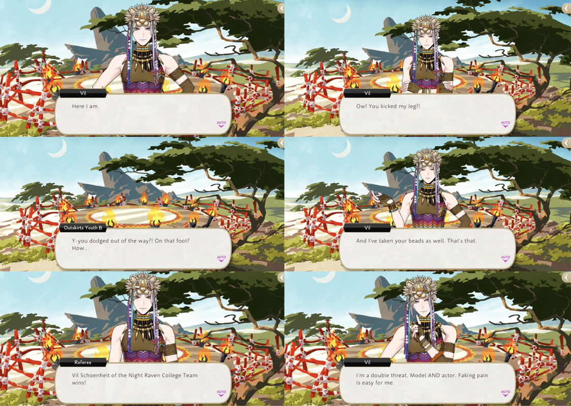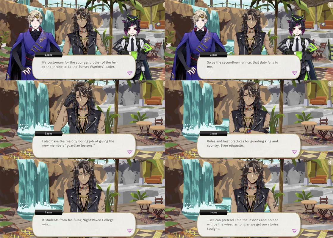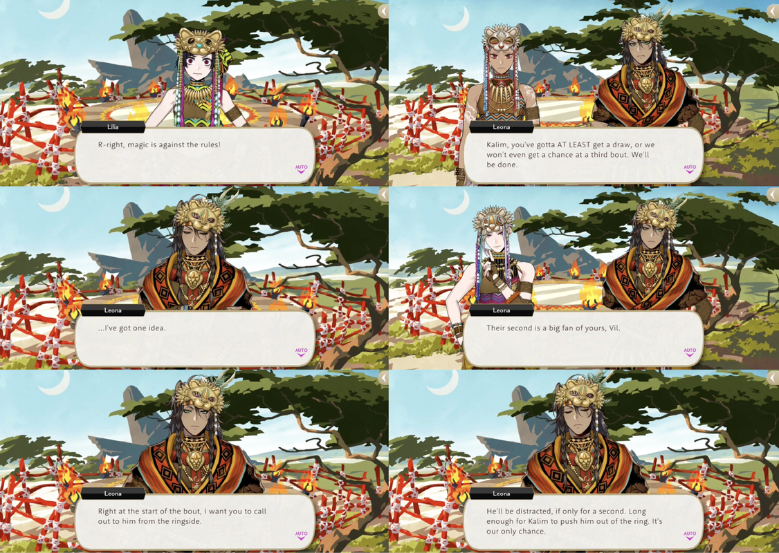 Leona gives each member of the group a personalized strategy for the tournament, telling Kalim to “go for a draw in al his bouts” so that Lilia and Vil will have a chance to watch the competition and prepare for their own rounds. Kalim decides that it would be more entertaining if he were to try and win, instead, ignoring Leona’s advice and immediately losing his bout.