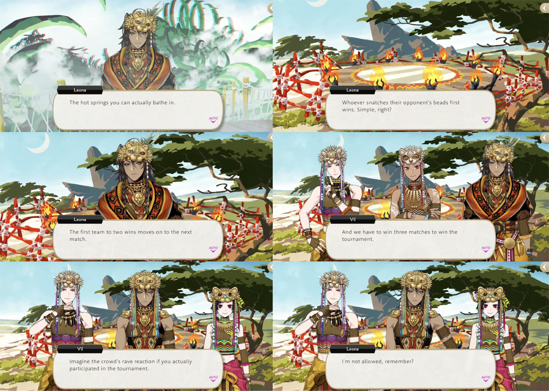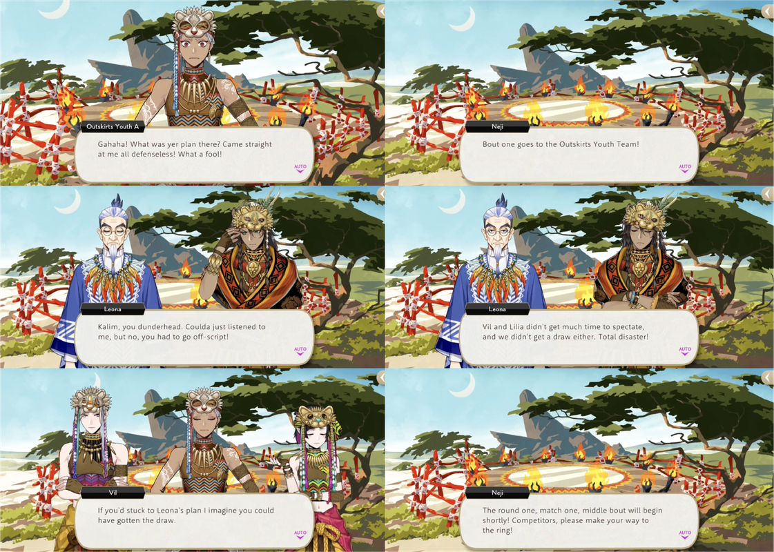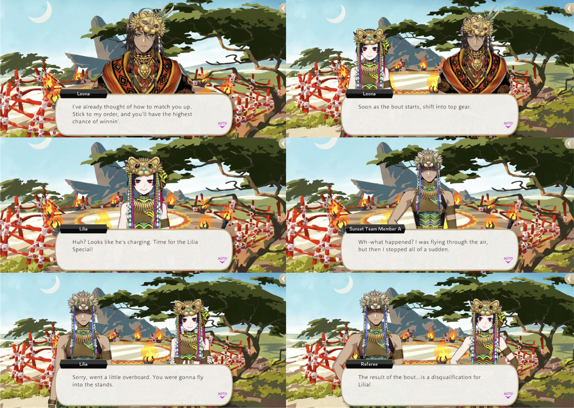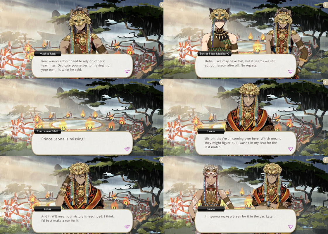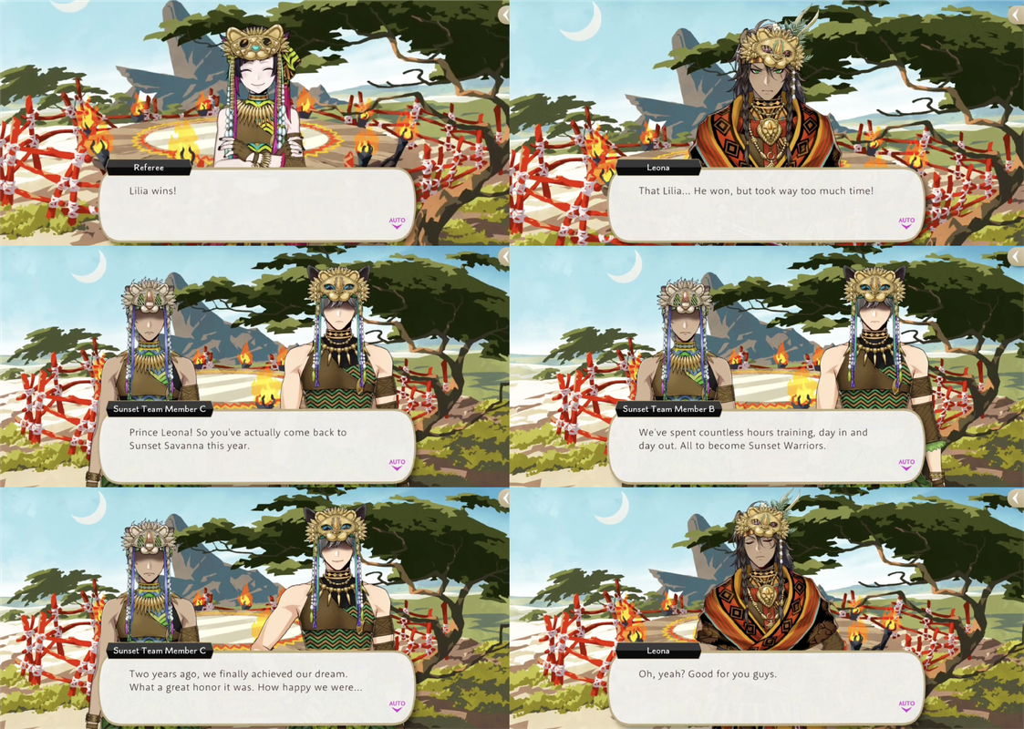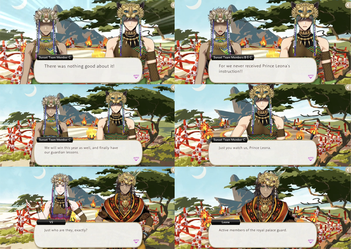 After the first round Leona is set upon by active members of the royal palace guard who achieved their dream of becoming Sunset Warriors two years ago but never received the training from Leona that they thought they would be awarded with. They assure Leona, “We will win this year as well, and finally have our guardian lessons.”