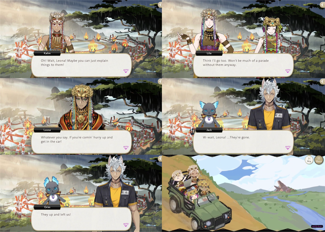 Leona is noticed to be missing from his seat and a search begins for him. As being discovered could result in the NRC team’s victory being rescinded Leona abruptly leaves in his car, followed by Kalim, Vil and Lilia and leaving Jack, Grim and the prefect behind.
