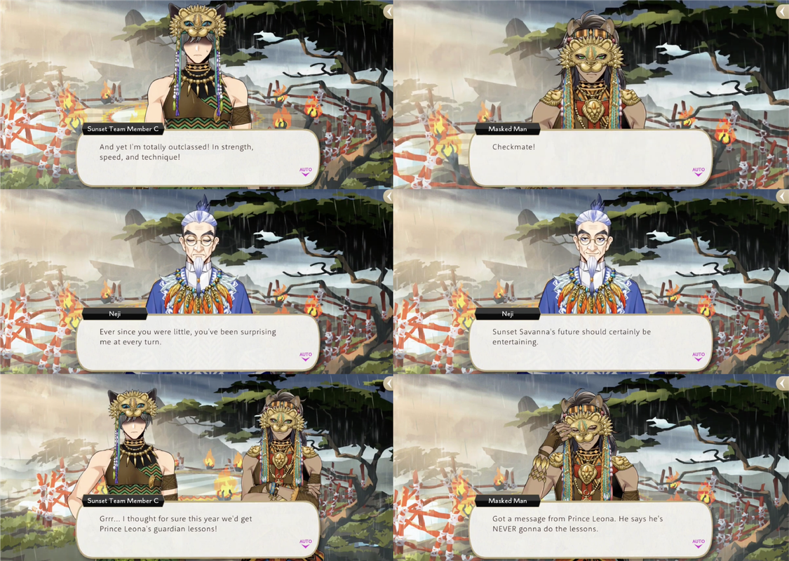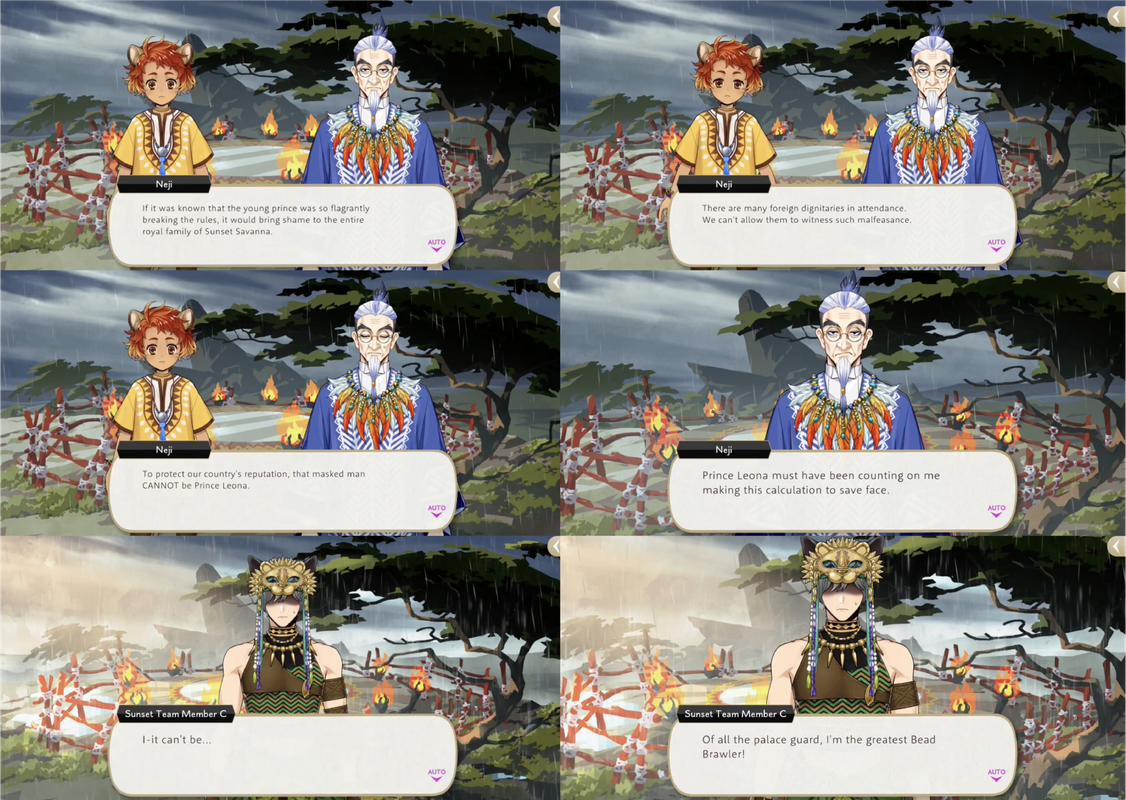 Kifaji explains, “Prince Leona isn’t allowed in the tournament. His participation would mean an immediate disqualification. If it was known that the young prince was so flagrantly breaking the rules, it would bring shame to the entire royal family of Sunset Savanna. There are many foreign dignitaries in attendance. We can’t allow them to witness such malfeasance. To protect our country’s reputation, that masked man CANNOT be Prince Leona. Prince Leona must have been counting on me making this calculation to save face.”