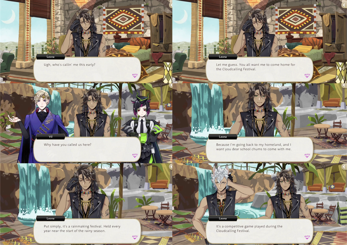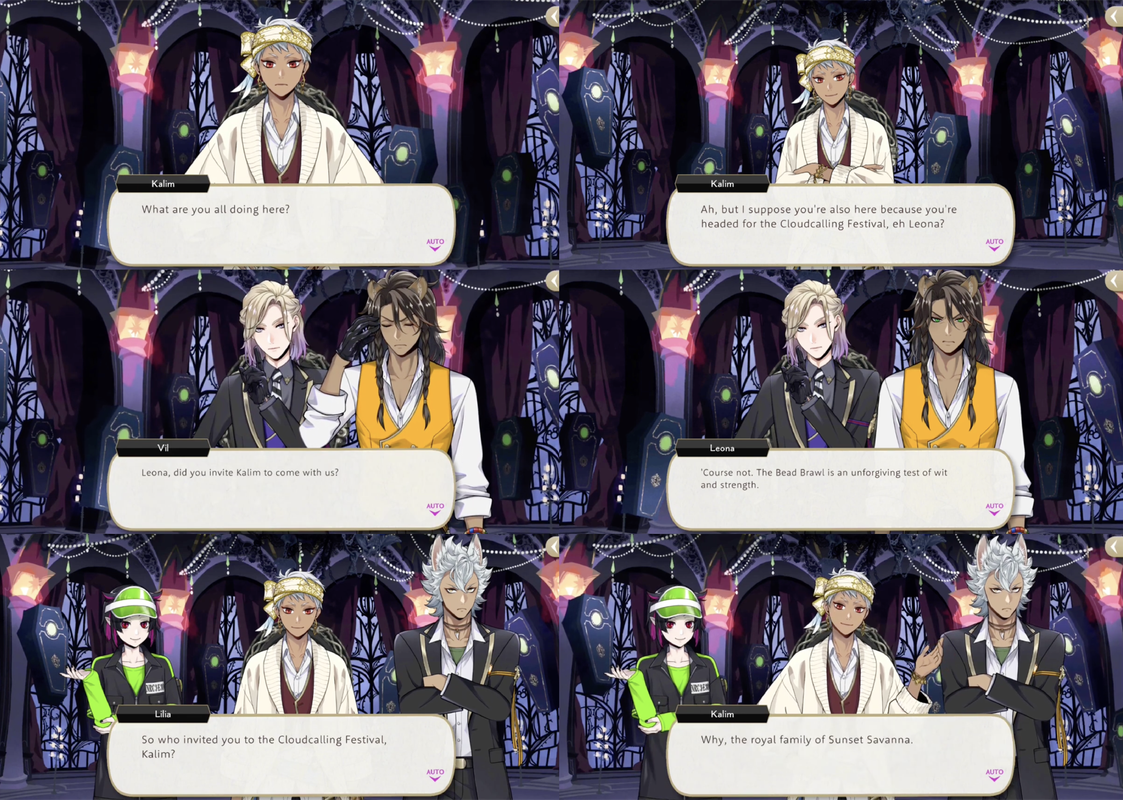 On their way to Leona’s hometown they meet Kalim, who has been invited to the festival by Leona’s family as a guest due to his status as a descendant of one of Scalding Sands’ most powerful families.