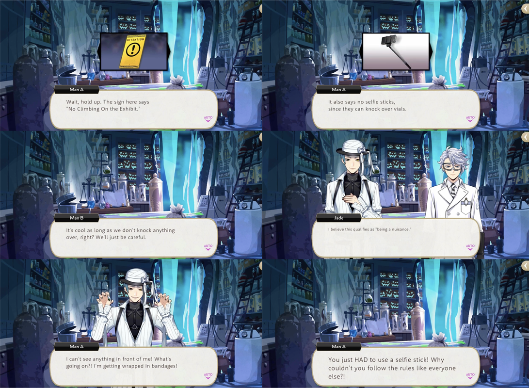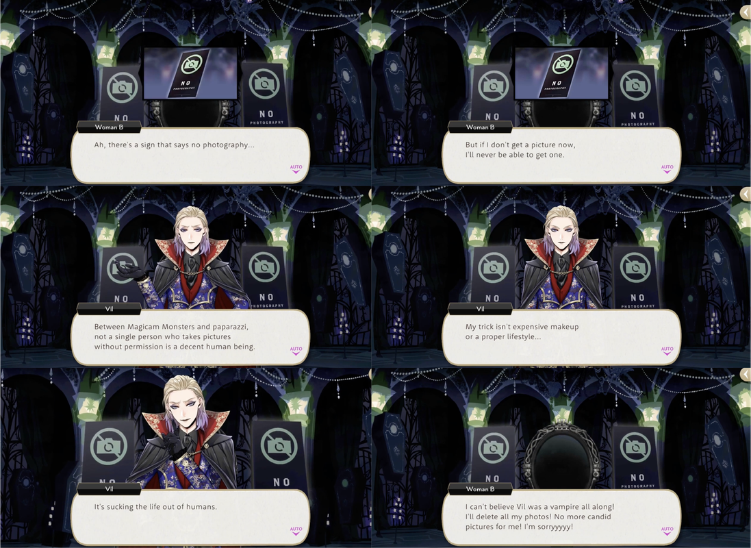 There are similar incidents throughout the campus with Riddle, Leona, Floyd, Jamil, Epel, Ortho, Sebek and Malleus threatening Magicam Monsters with violence in revenge for their poor behavior.