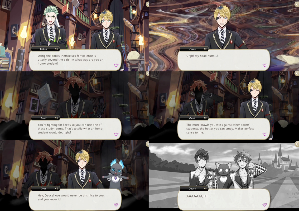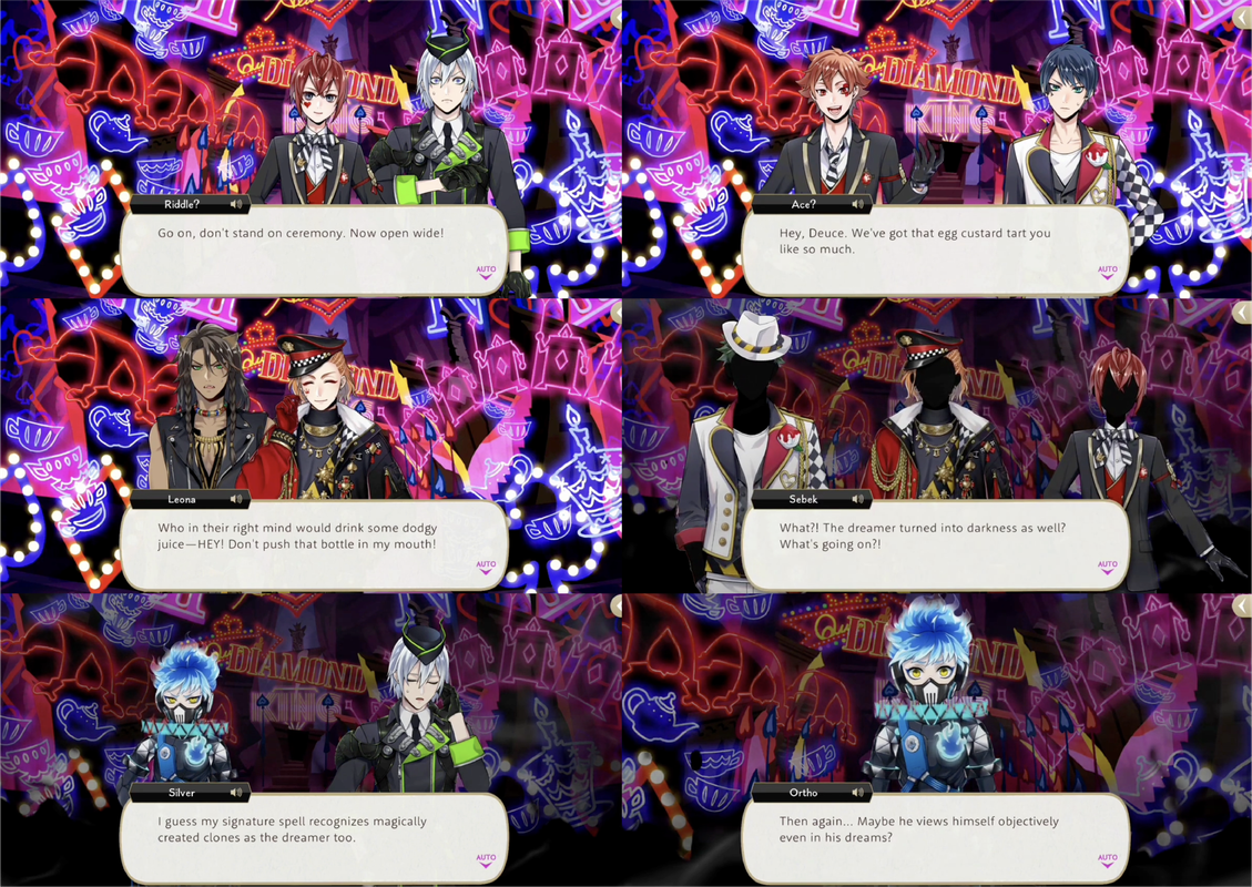 Sebek confronts Deuce for not being a true honor student. Dream-Ace tries to convince Deuce that everything makes sense, but Grim points out that Ace is never that nice to Deuce, successfully awakening him.