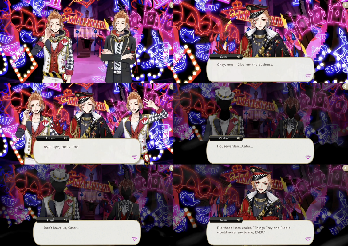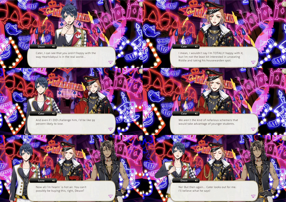 Cater insists that he and Trey would never take advantage of younger students and Leona is unconvinced, but Deuce decides to believe in Cater.