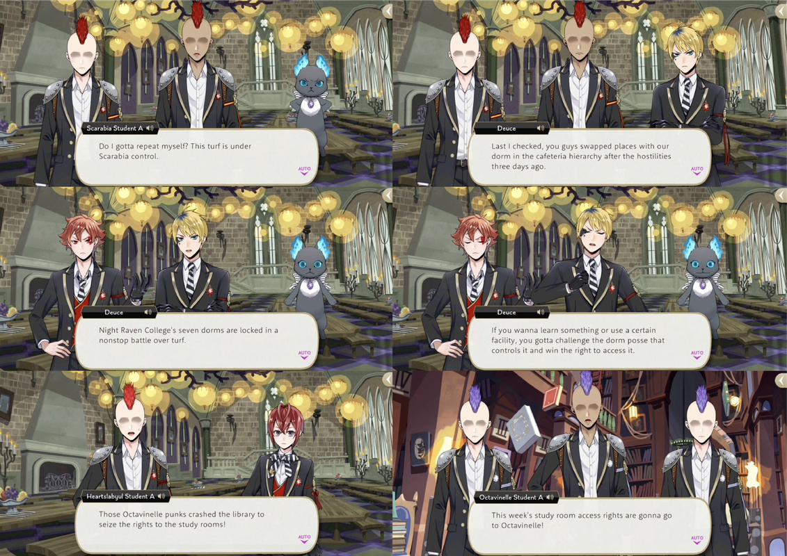 The group of Idia, Ortho, Leona, the prefect, Grim, Silver and Sebek arrives in Deuce‘s dream, where the dorms are gangs locked in nonstop battles over turf within the school.