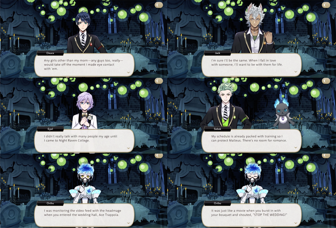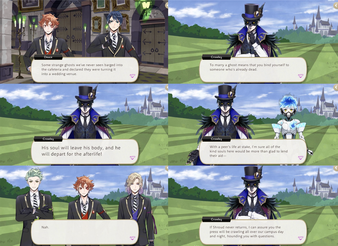 The students are chased away by her guards, who wish to use the school as a wedding venue, and Crowley reveals that Idia marrying the dead princess will kill him.