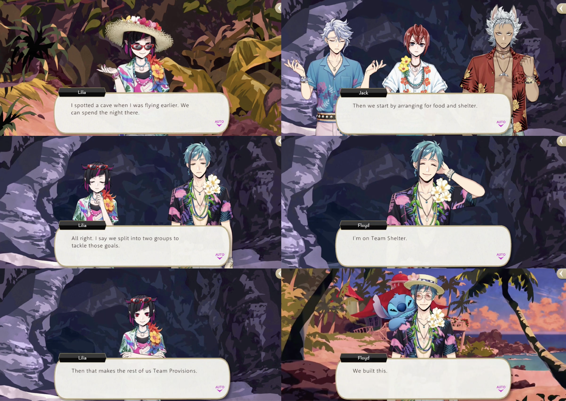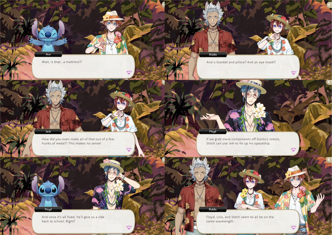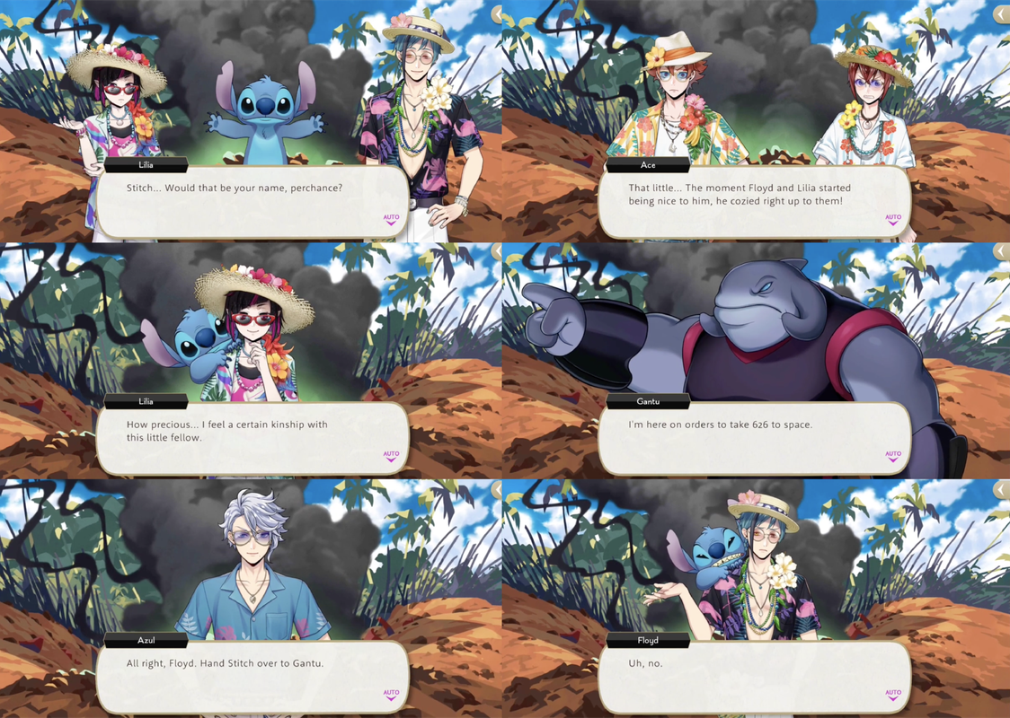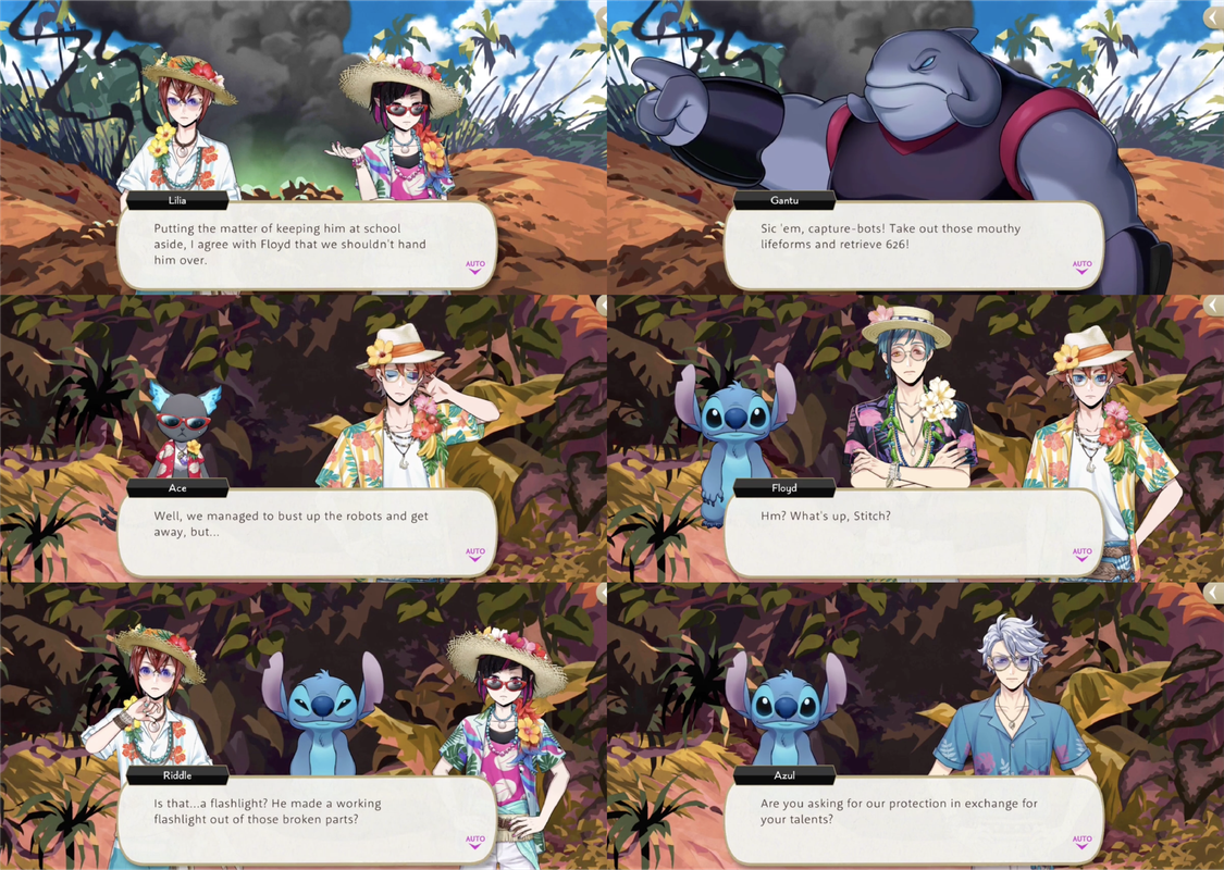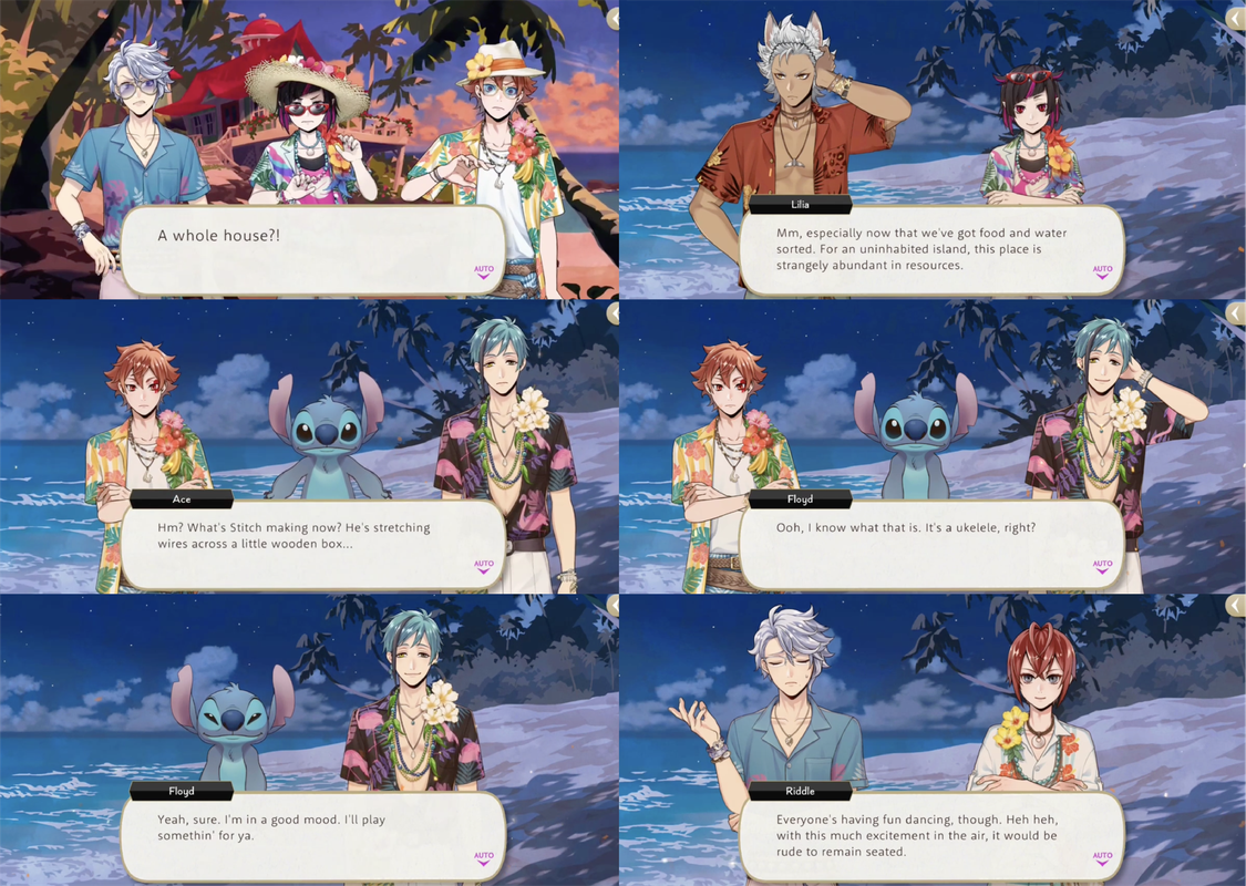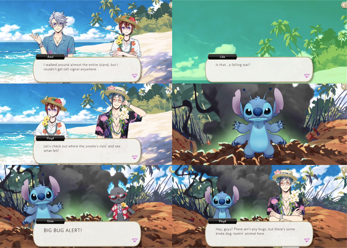 Grim finds a mysterious book with a mirror inlaid on the front cover in the school library. Upon opening it the book seems to transport Grim, Lilia, Floyd, Jack, Ace, Azul and the prefect to a deserted island dressed in tropical clothes.