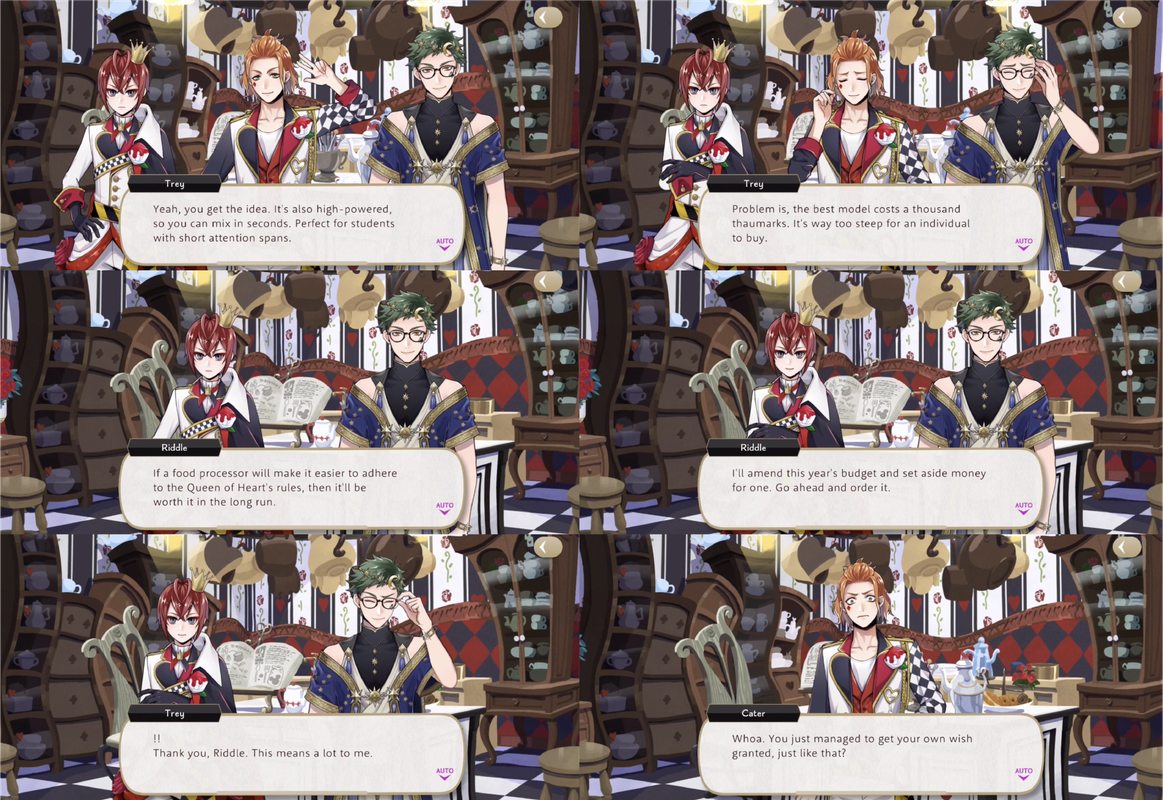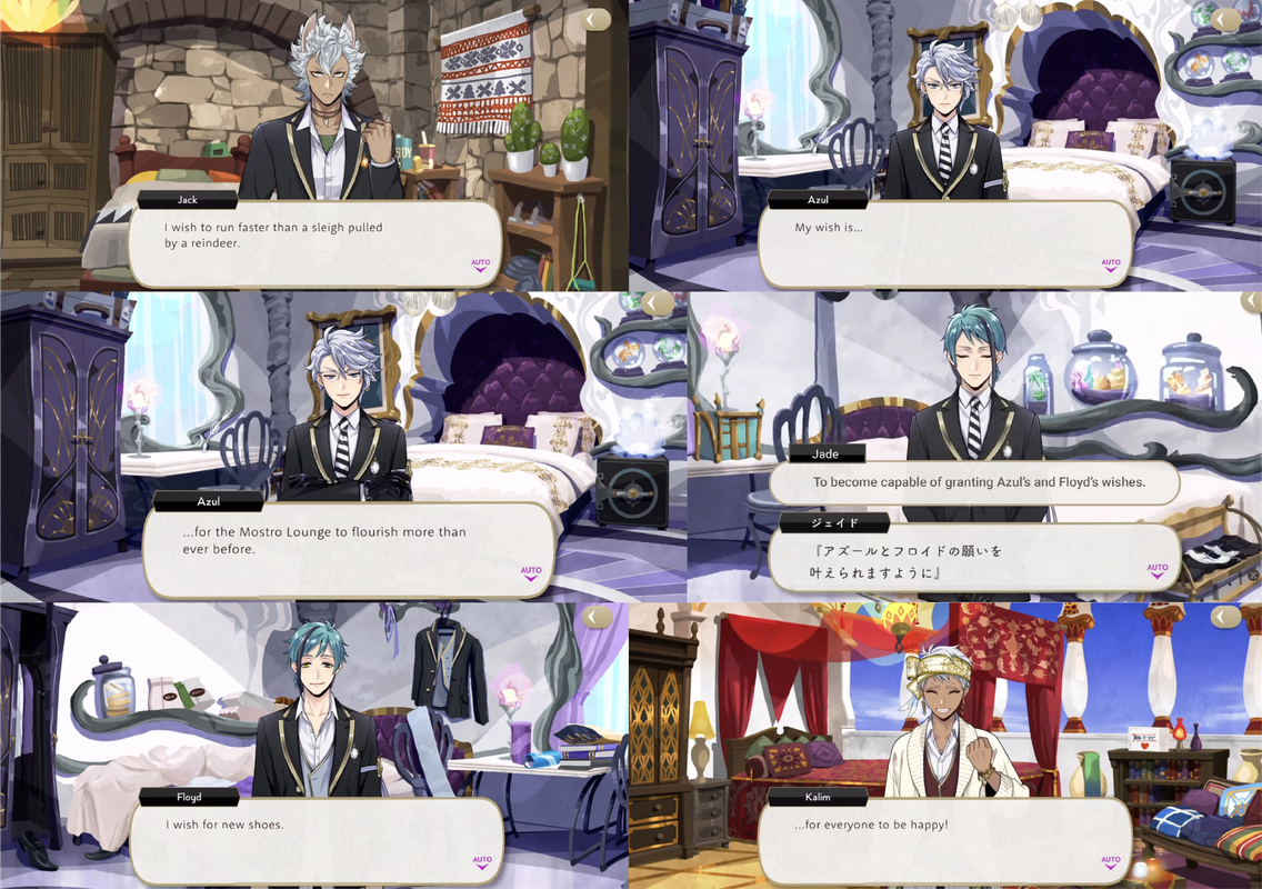 Deuce insists that Idia join the group, and Idia points out that Deuce has been lagging behind in both wish-collecting and dancing. Deuce makes a bet with Idia: if he meets both his own and Idia’s wish-collecting quota while also improving his dancing, Idia will have to participate in the ceremony in person. If he fails, Idia will not be participating at all.