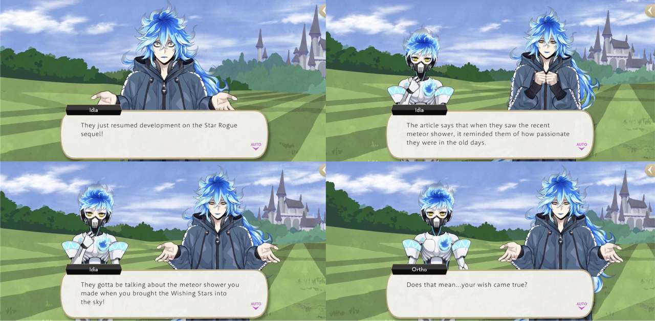 Idia then discovers that the Star Rogue development team was inspired to reunite and resume work on the game’s sequel after seeing Ortho’s meteor shower, resulting in Idia and Ortho indirectly granting their own wishes.