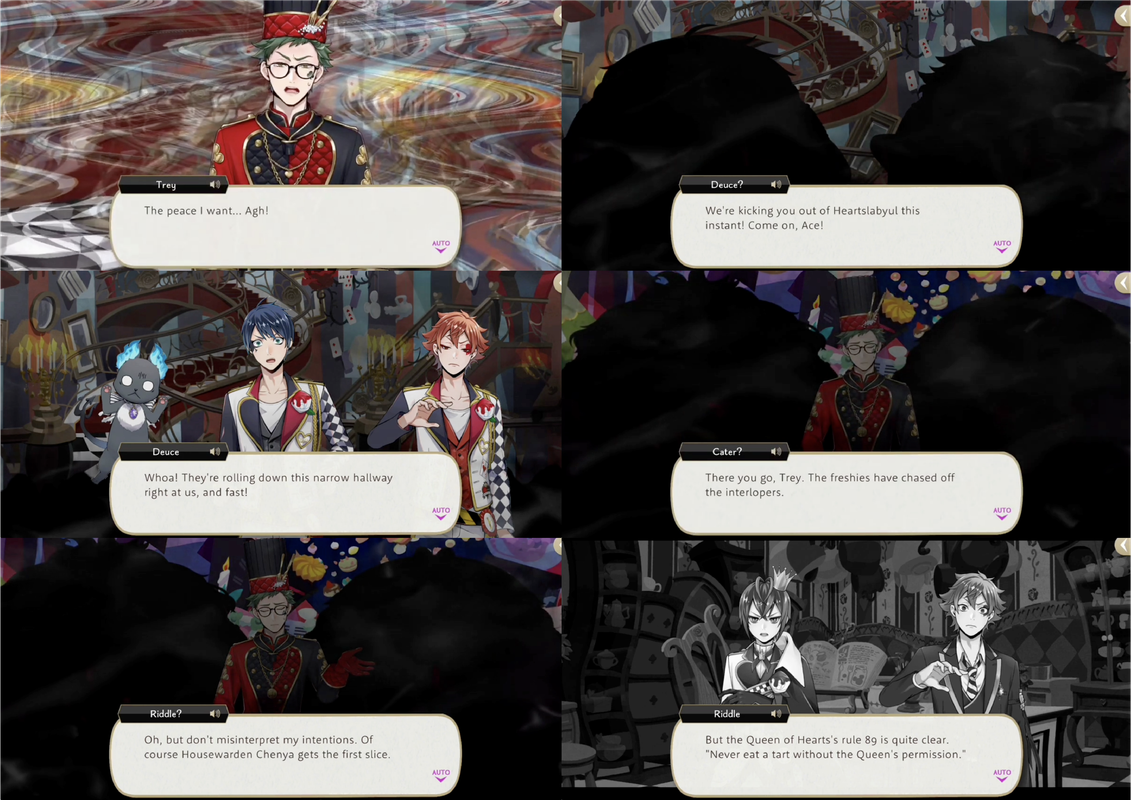 Dream-Riddle talks about Chenya being Housewarden and Trey begins to remember that he is not, telling about Riddle’s strict adherence to daily nutritional allowances.
