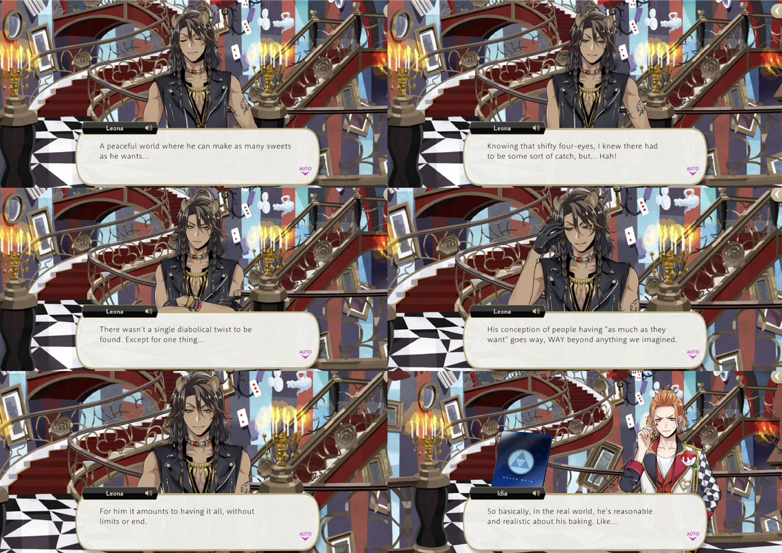 Leona says, “A peaceful world where he can make as many sweets as he wants…There wasn’t a single diabolical twist to be found. Except for one thing…for him it amounts to having it all, without limits or end.”