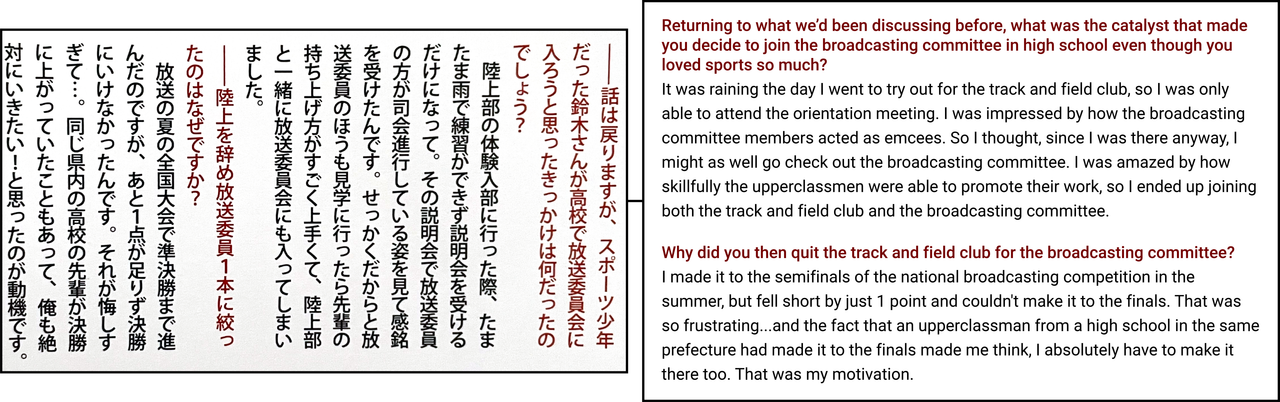 He joined both track-and-field and the broadcasting committee, but after failing to qualify for a national broadcasting competition by a single point he quit the track team to focus fully on broadcasting.