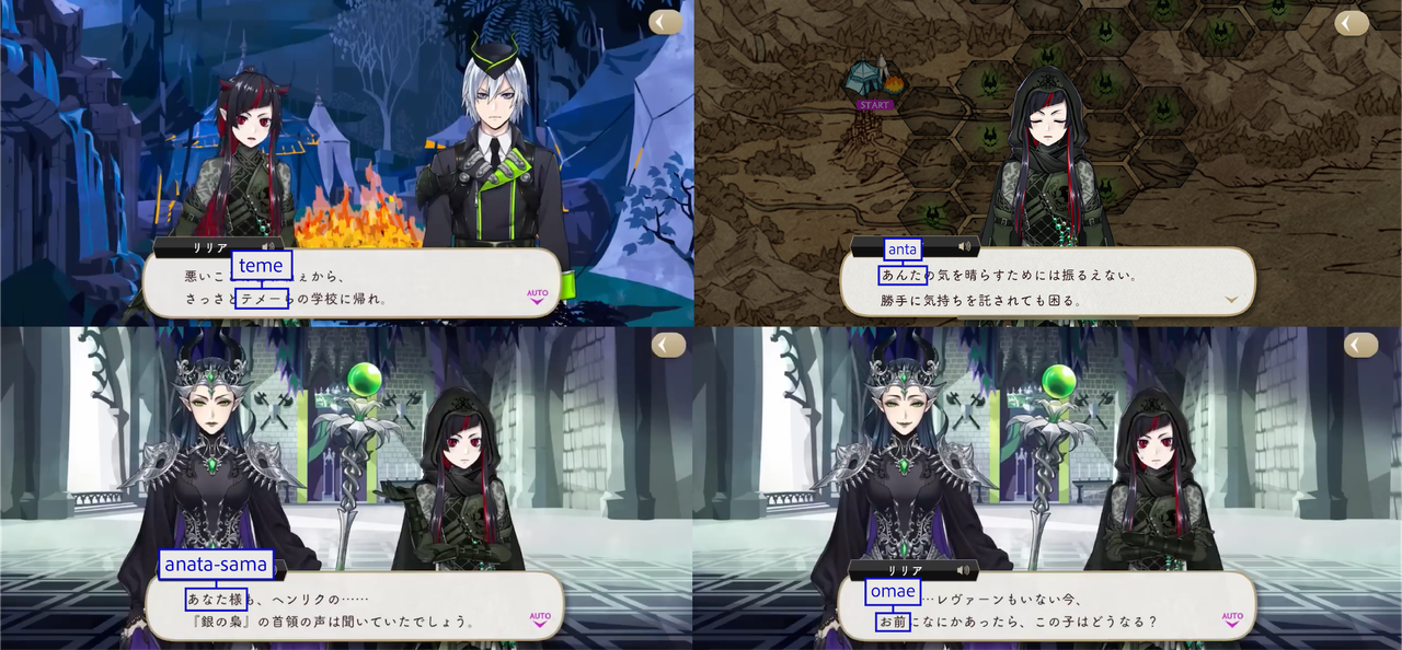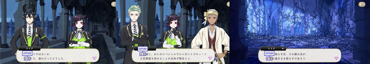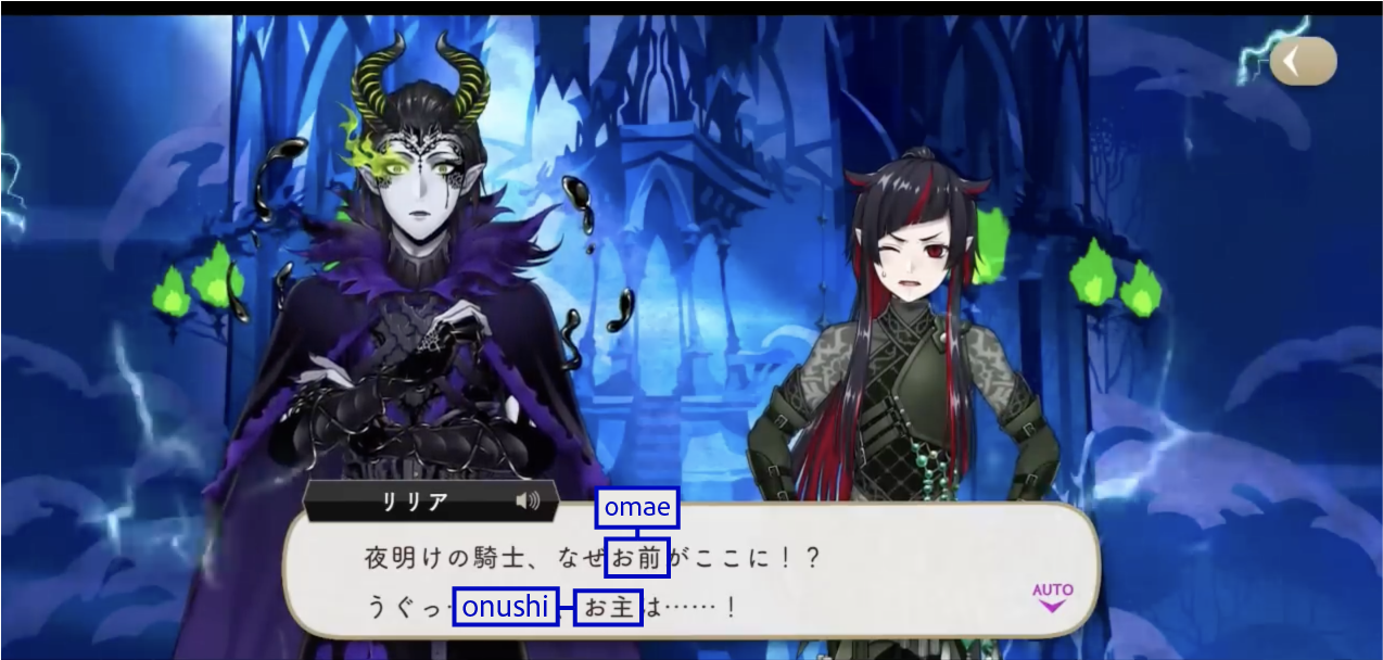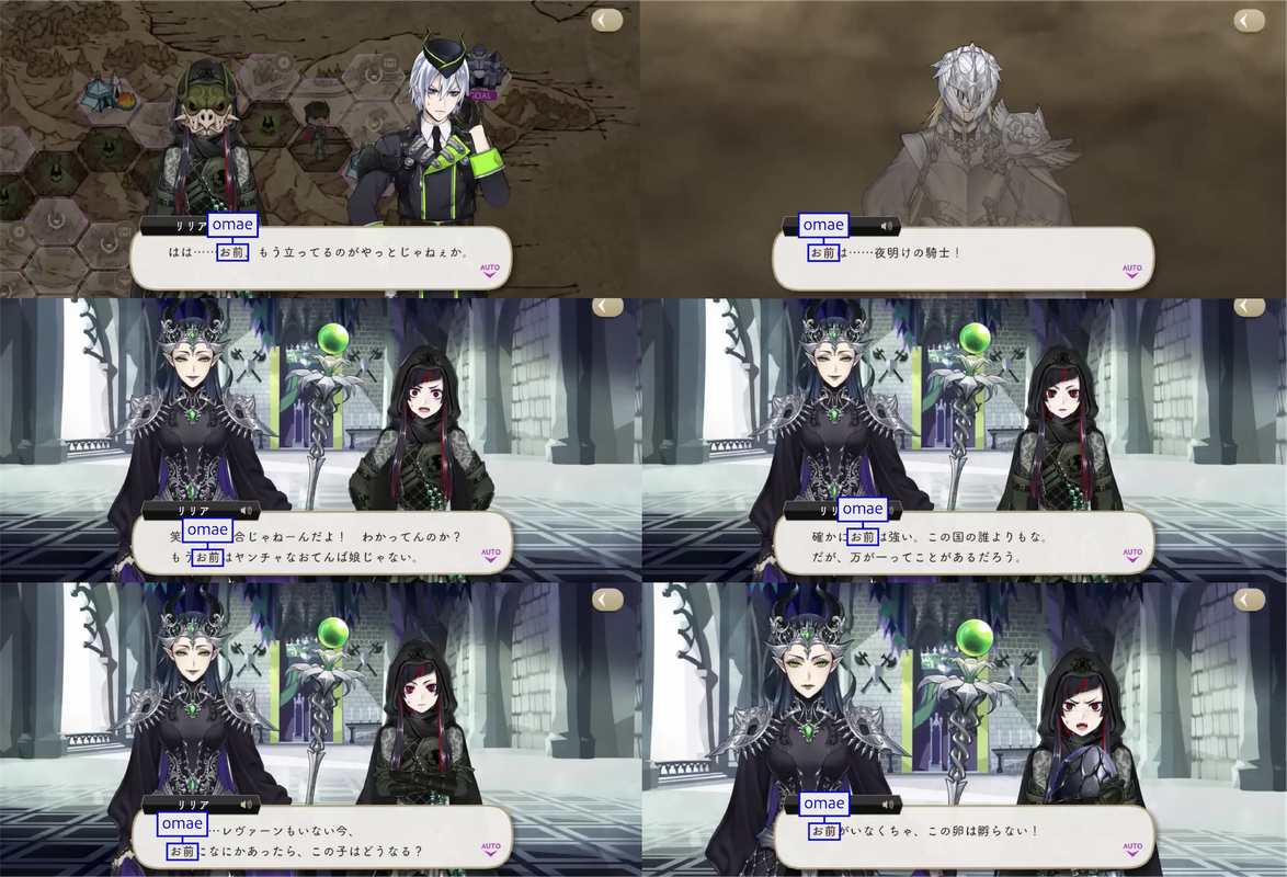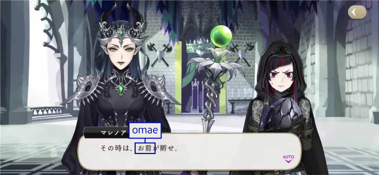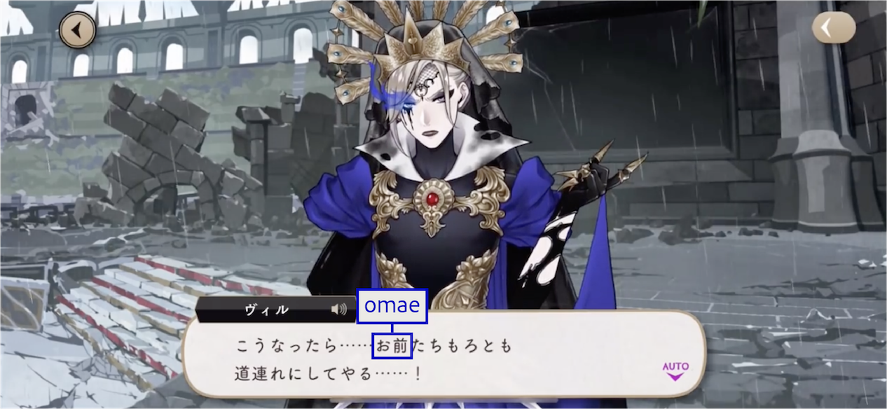 The Dawn Knight uses お前 (omae) upon discovering Lilia’s group during their escape.