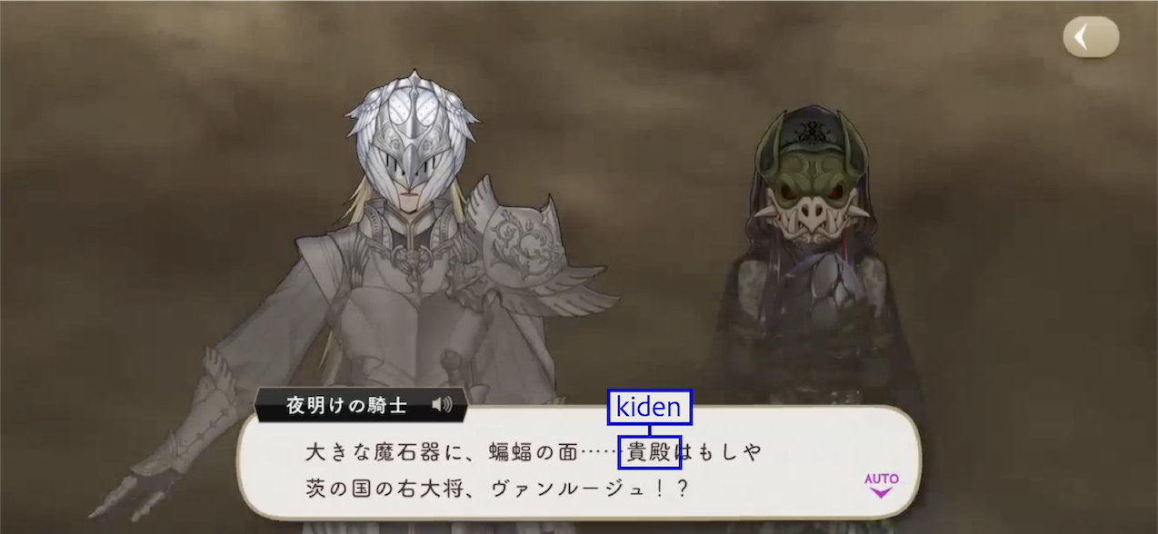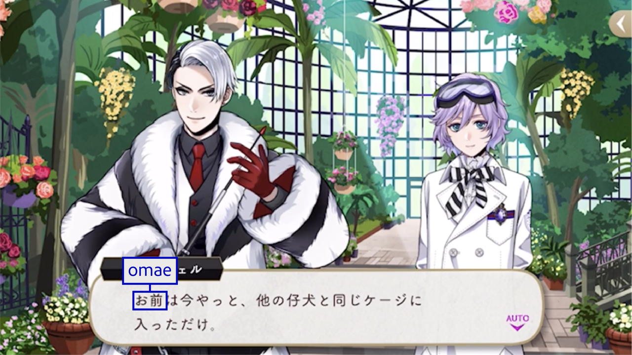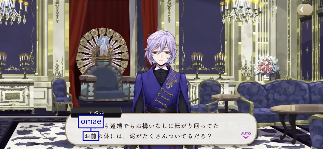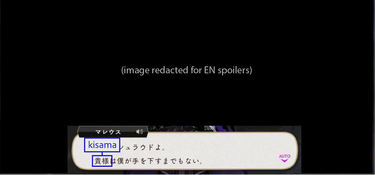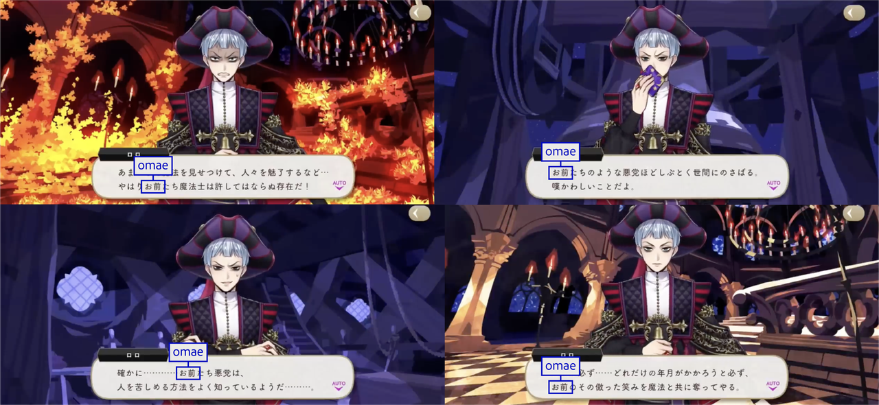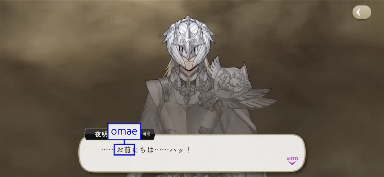 The Dawn Knight uses お前 (omae) upon discovering Lilia’s group during their escape.